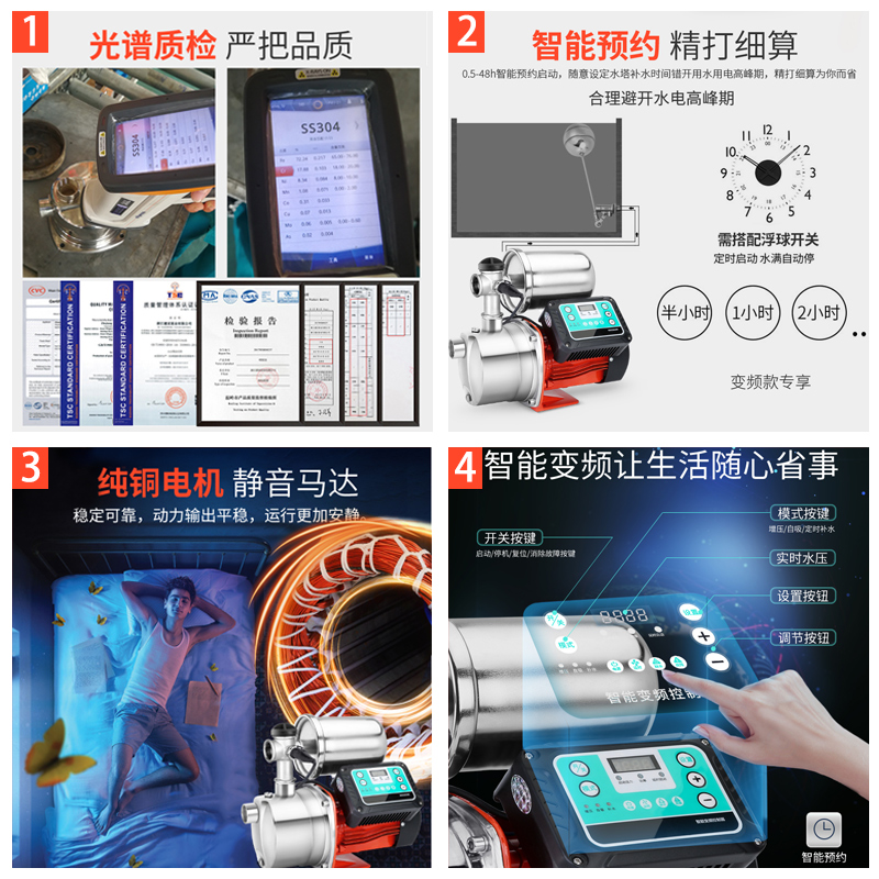 变频增压泵家用自来水加压泵全自动静D音220V水井抽水泵喷射自吸
