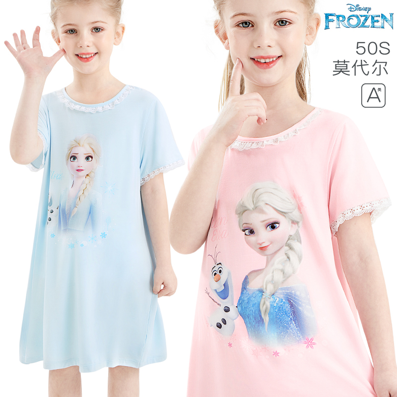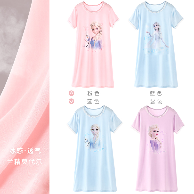 迪士尼女童睡衣夏莫代尔睡裙儿童短袖冰丝薄款冰雪公主宝宝家居服