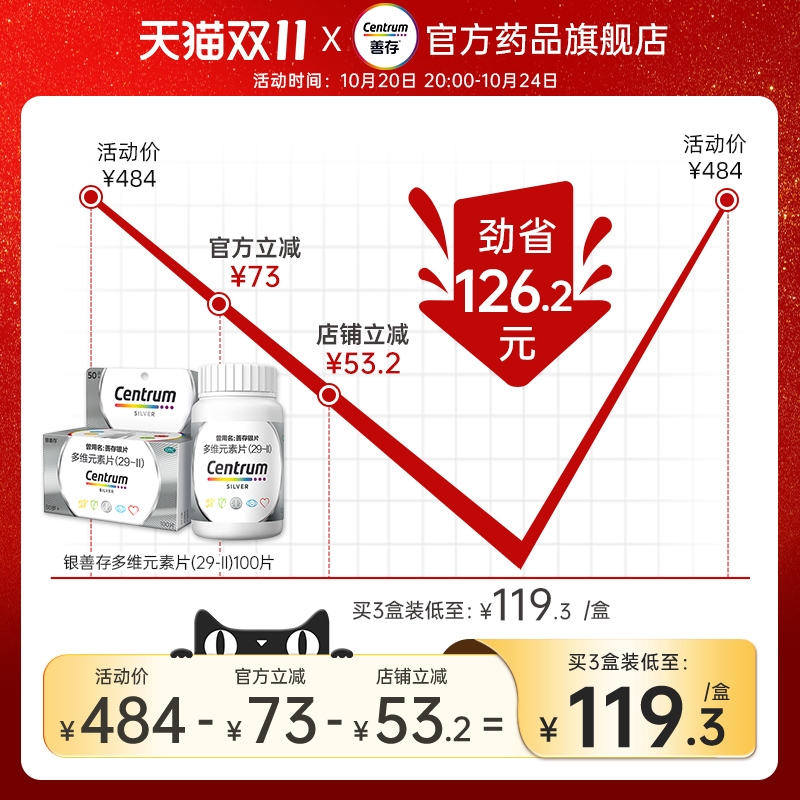 善存多种维生素正品官方旗舰老年人复合维生素银善存大脑维生素
