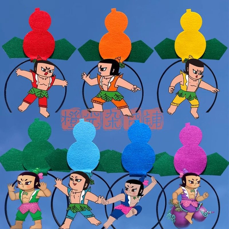 新品幼儿园演出表演道具七个金刚葫芦娃头箍儿童葫芦兄弟头饰