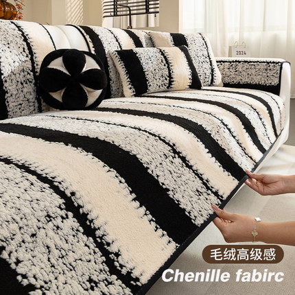 条纹毛绒沙发垫2025新款沙发盖布轻奢高级感秋冬款加厚直排坐垫子