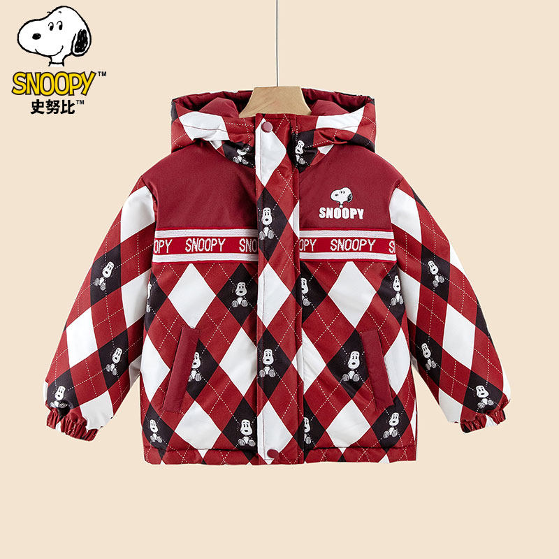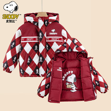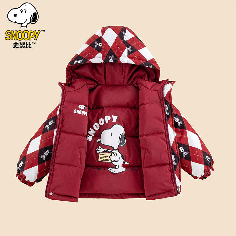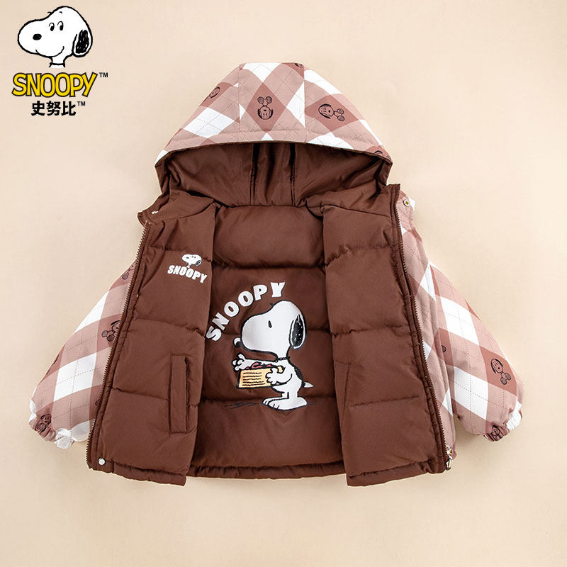 史努比冬季新款童装儿童宽松休闲舒适两面穿可爱卡通连帽羽绒服