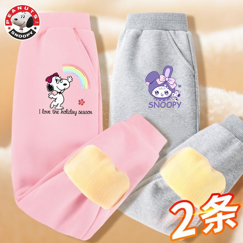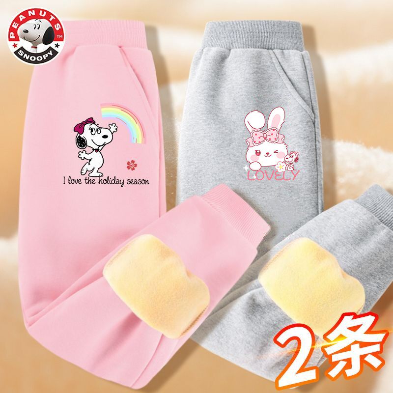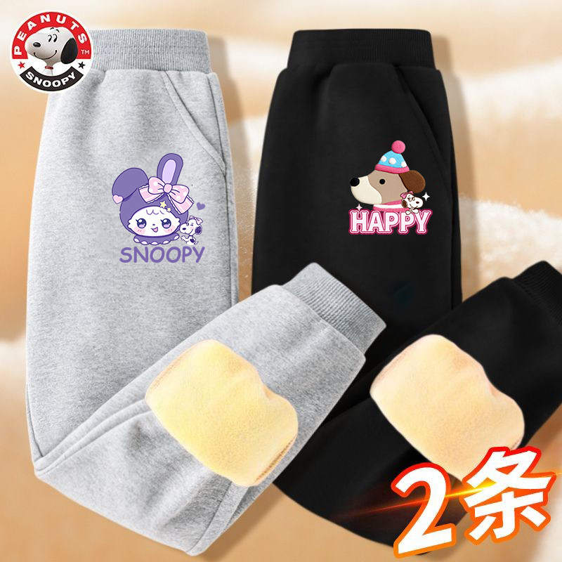 史努比女童加绒裤卫裤加厚一体绒儿童棉裤冬季卡通保暖女孩运动裤