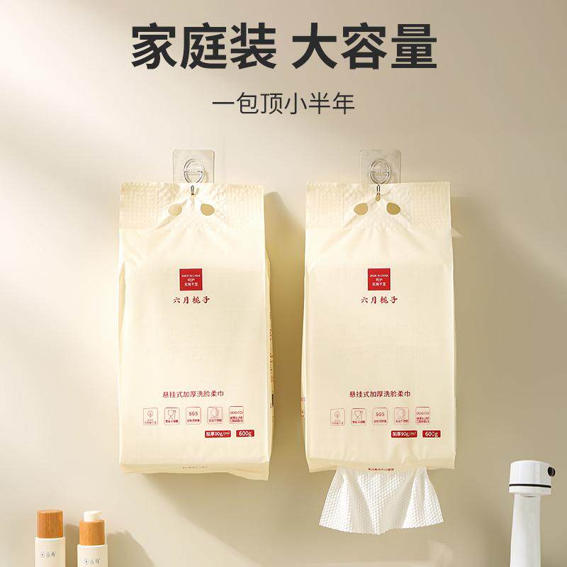 六月栀子医护级600g悬挂式加厚洗脸柔巾2包干湿两用壁挂式棉柔巾