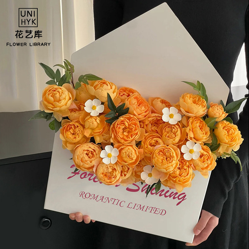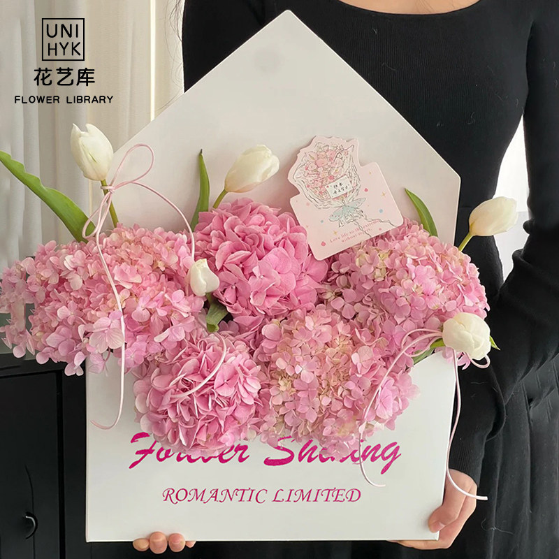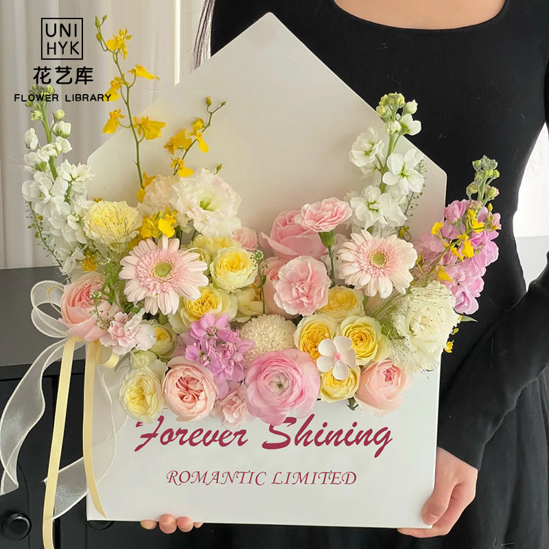 花艺库情人节新款情书信封花盒花店diy手工插花礼盒手捧抱抱盒子