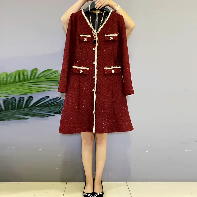 220斤大码女装时尚中长款长袖显瘦胖妹妹秋冬款V领小香风连衣裙潮