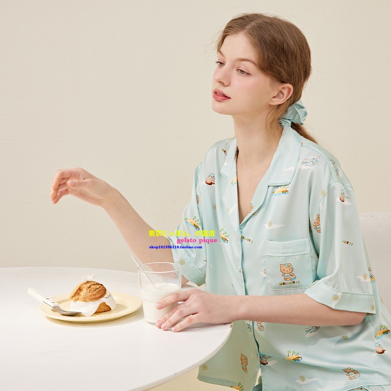 日本GP秋冬真丝睡衣女新款凯蒂猫kitty长袖长裤高级感家居服少女