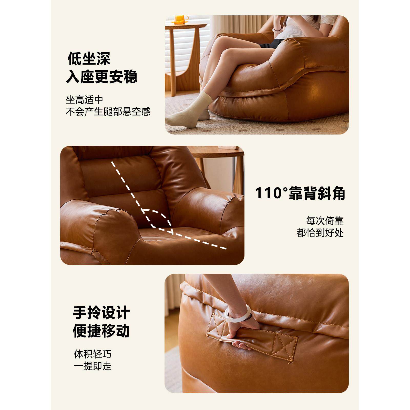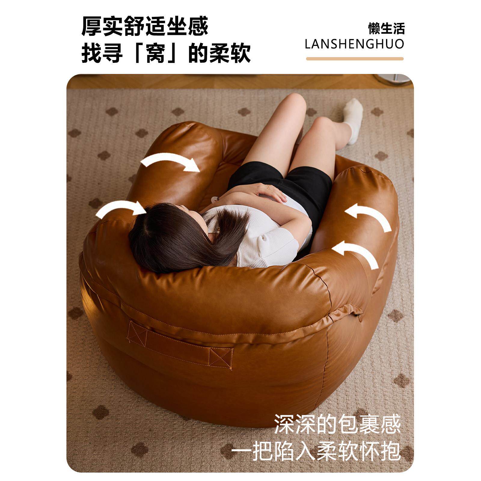 懒生活皮艺沙发客厅懒人沙发可躺可睡阳台卧室单人躺椅沙发榻榻米