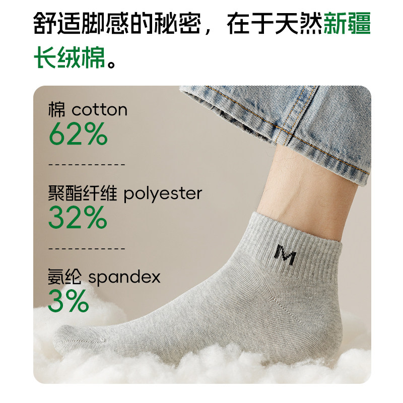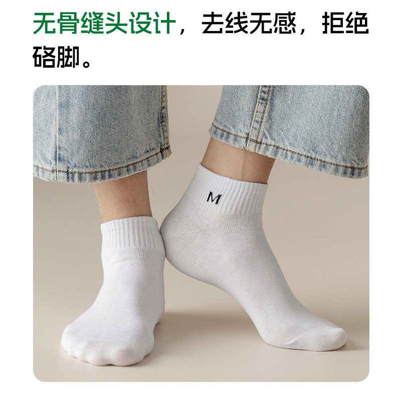 南极人袜子男款秋冬季短袜防臭吸汗男士棉袜7a抗菌黑白短筒男袜PB