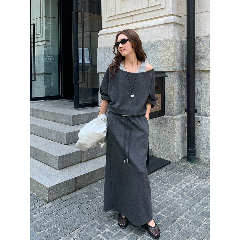 THE MIND假两件卫衣半身裙三件套2025秋季韩版休闲时尚套装T5351
