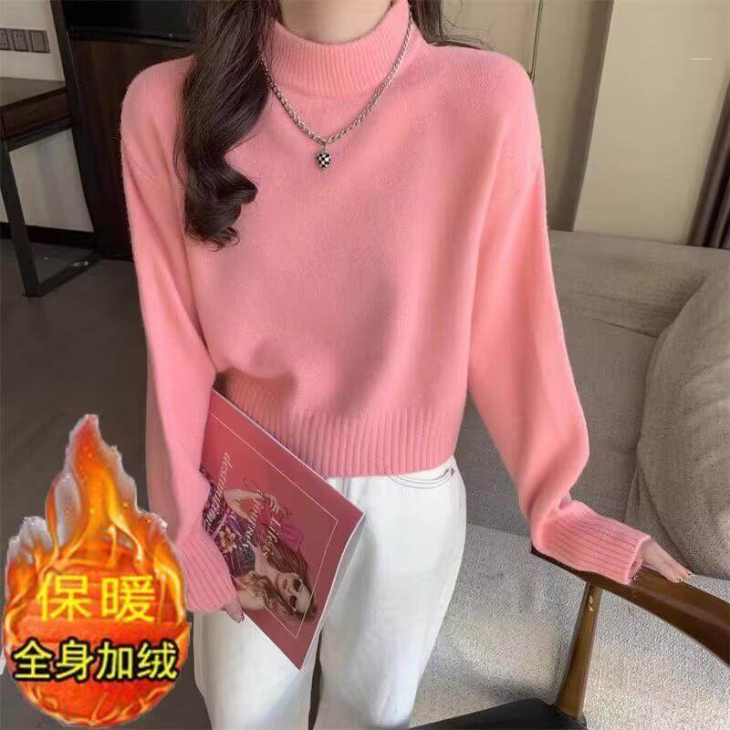 秋冬季白色半高领毛衣女加厚宽松针织衫小个子套头打底保暖1226n