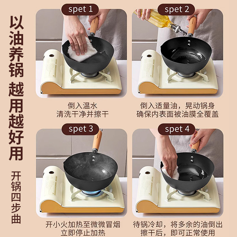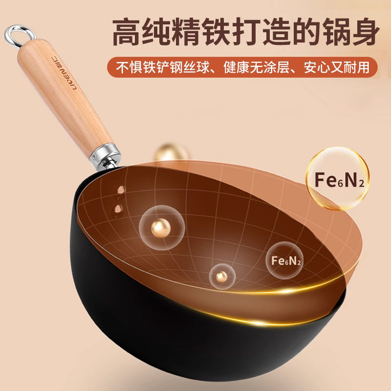 利仁铁锅炒锅家用炒菜锅老式平底锅燃气灶电磁炉通用无涂层不粘锅