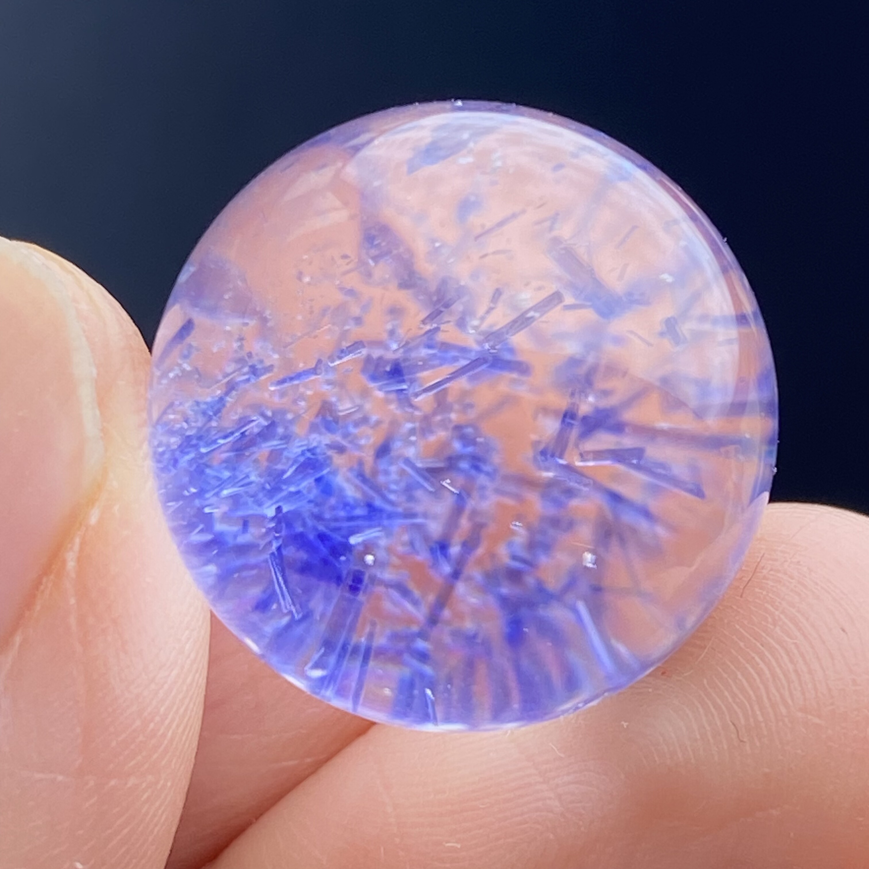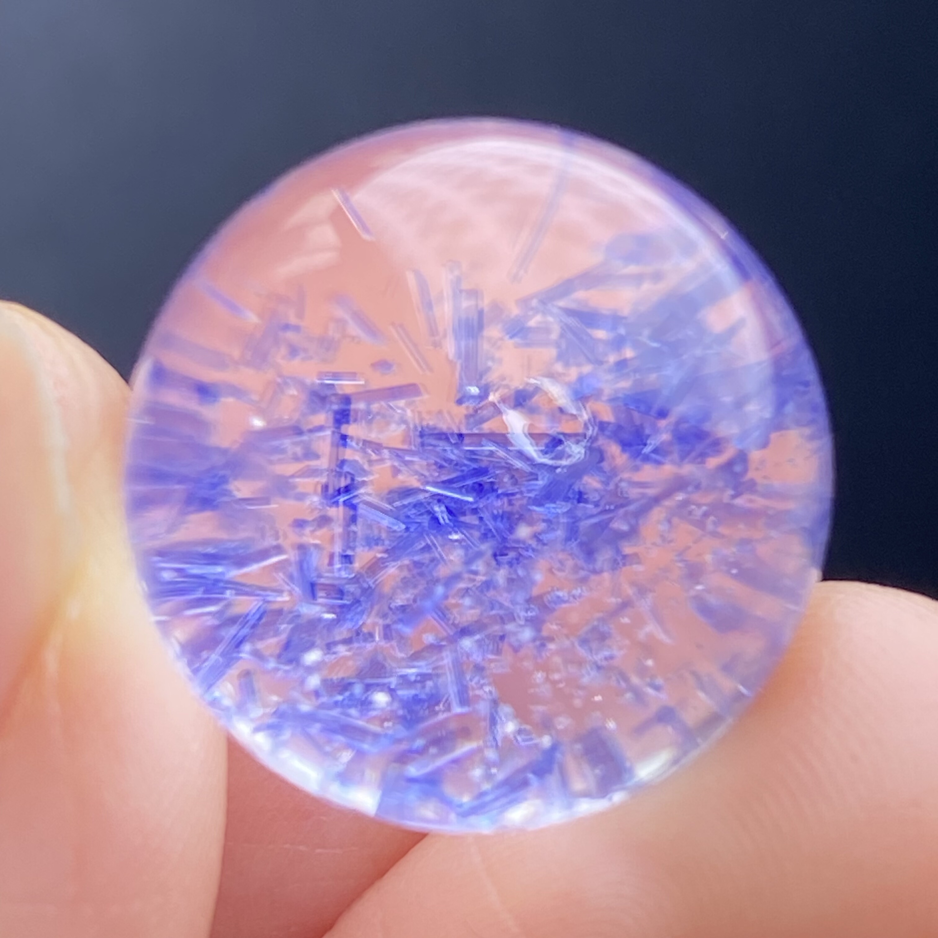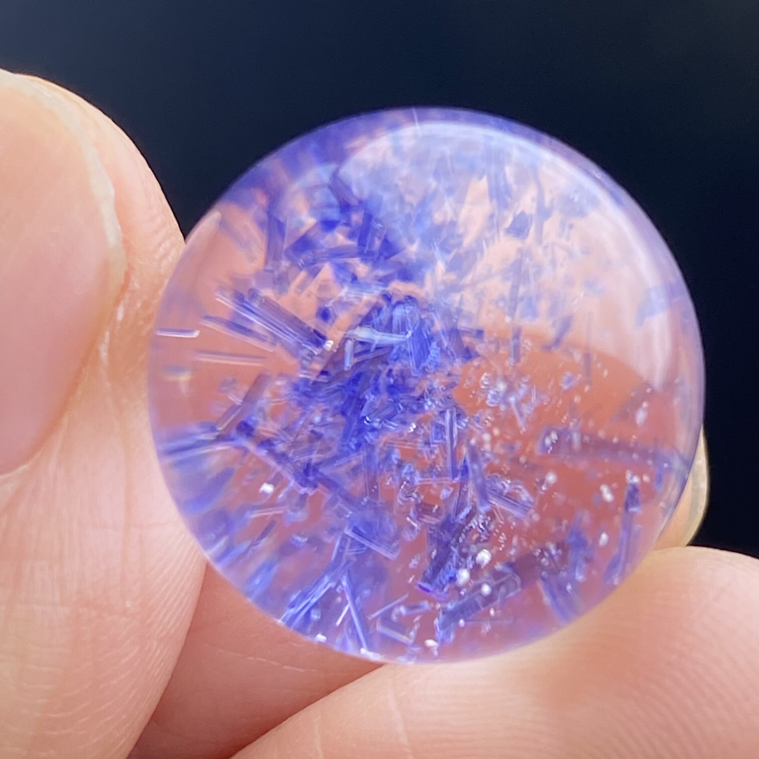 天然水晶全包裹蓝发晶吊坠圆珠水晶蓝线石项链18mm单珠饰品挂坠