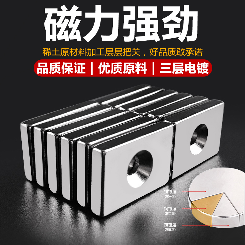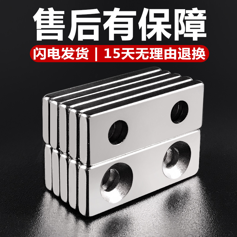 条形带孔强力磁铁强磁超强力铷钕铁硼高强度方形吸铁石螺丝单双孔