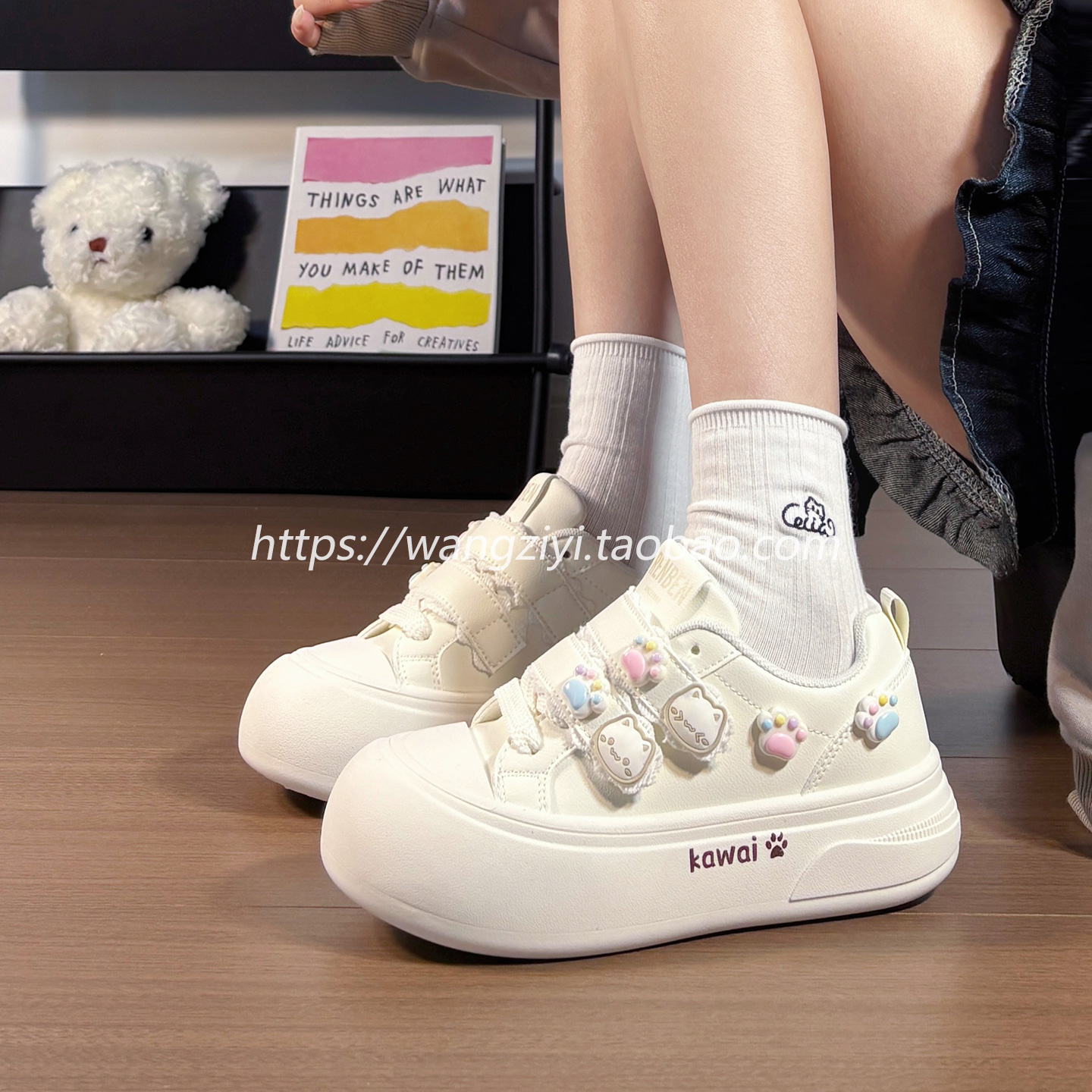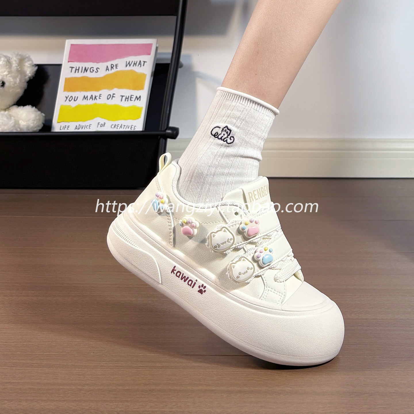 人本猫爪鞋子大头小白鞋女2025秋季新款原创设计百搭厚底板鞋软底