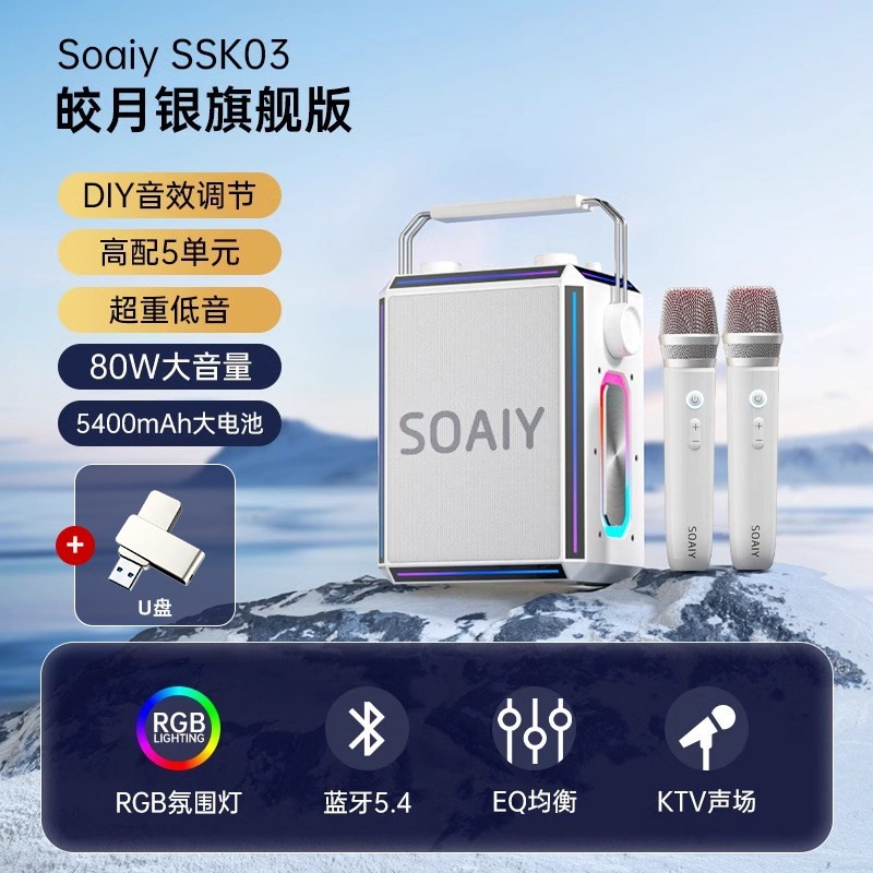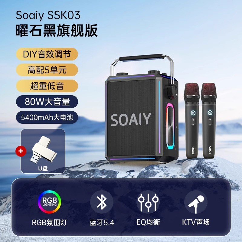 索爱SSK03话筒音响一体麦克风家户外无线蓝牙庭ktv唱K歌音箱套装