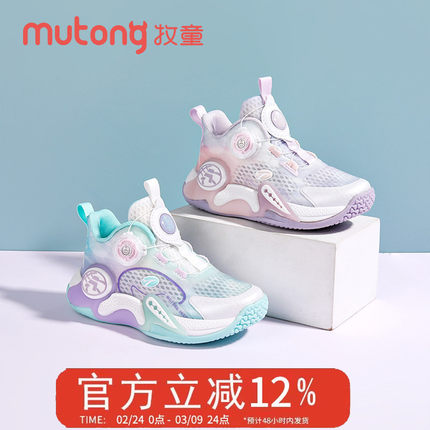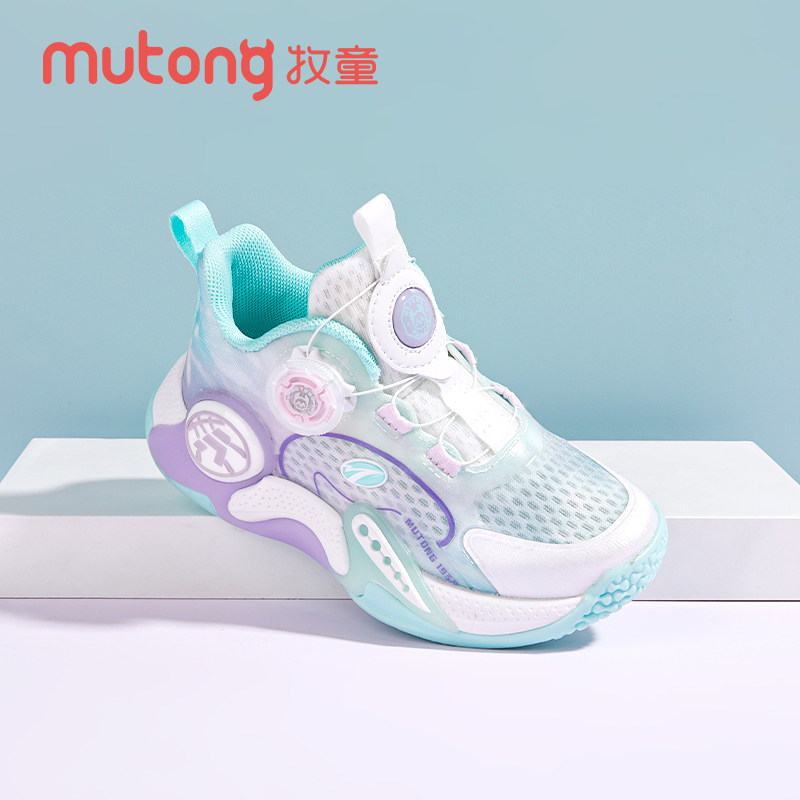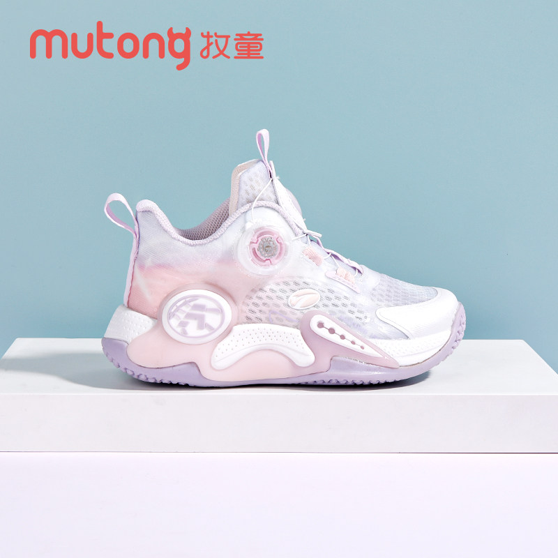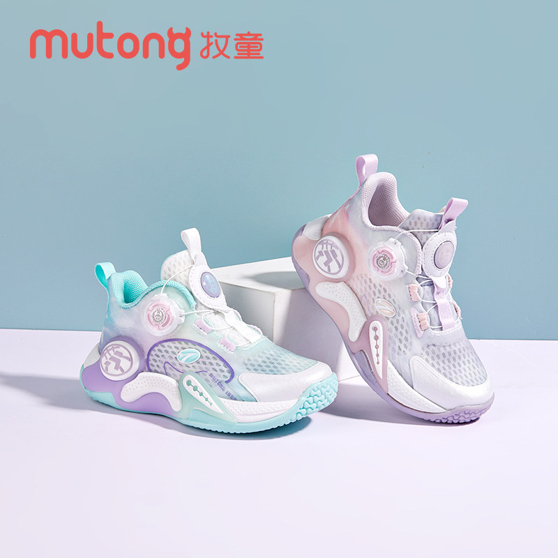 牧童童鞋女童篮球鞋2025春秋新款网面透气旋转纽扣运动鞋轻便跑鞋