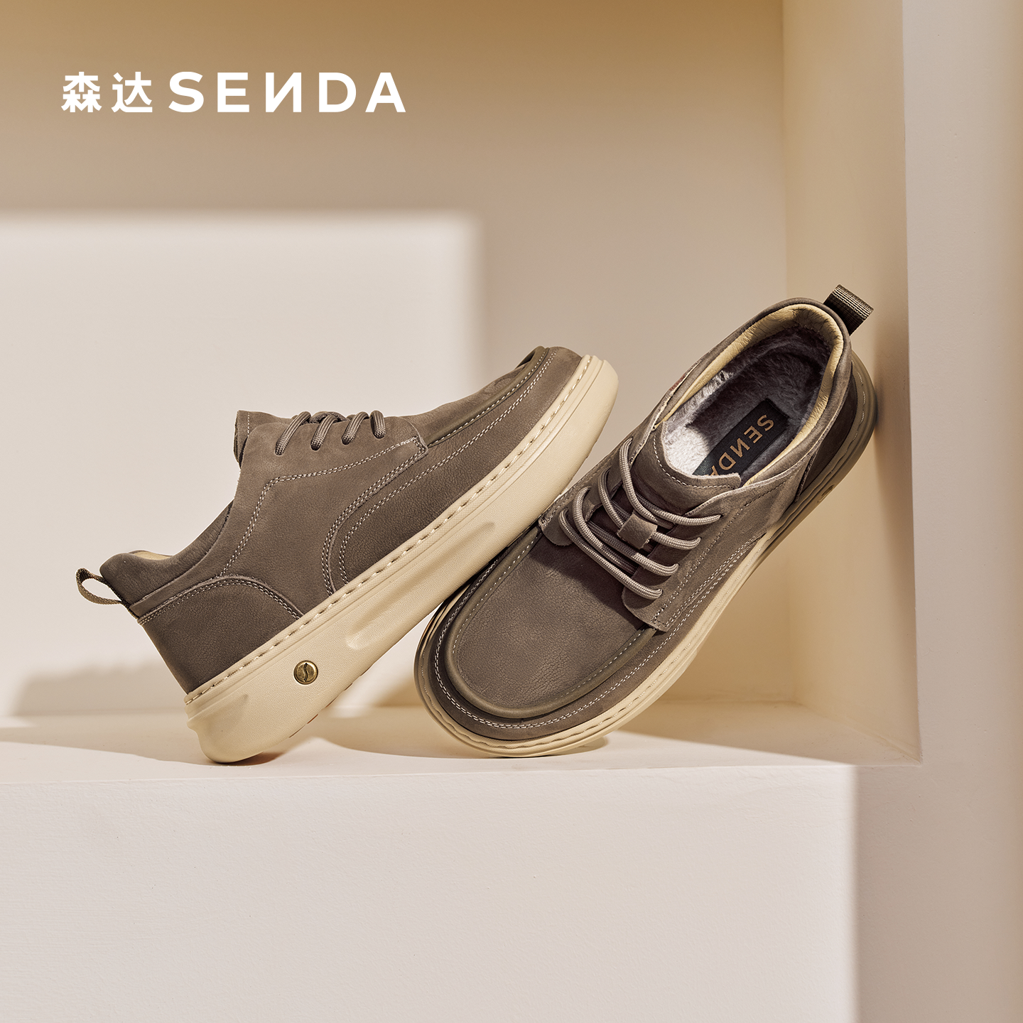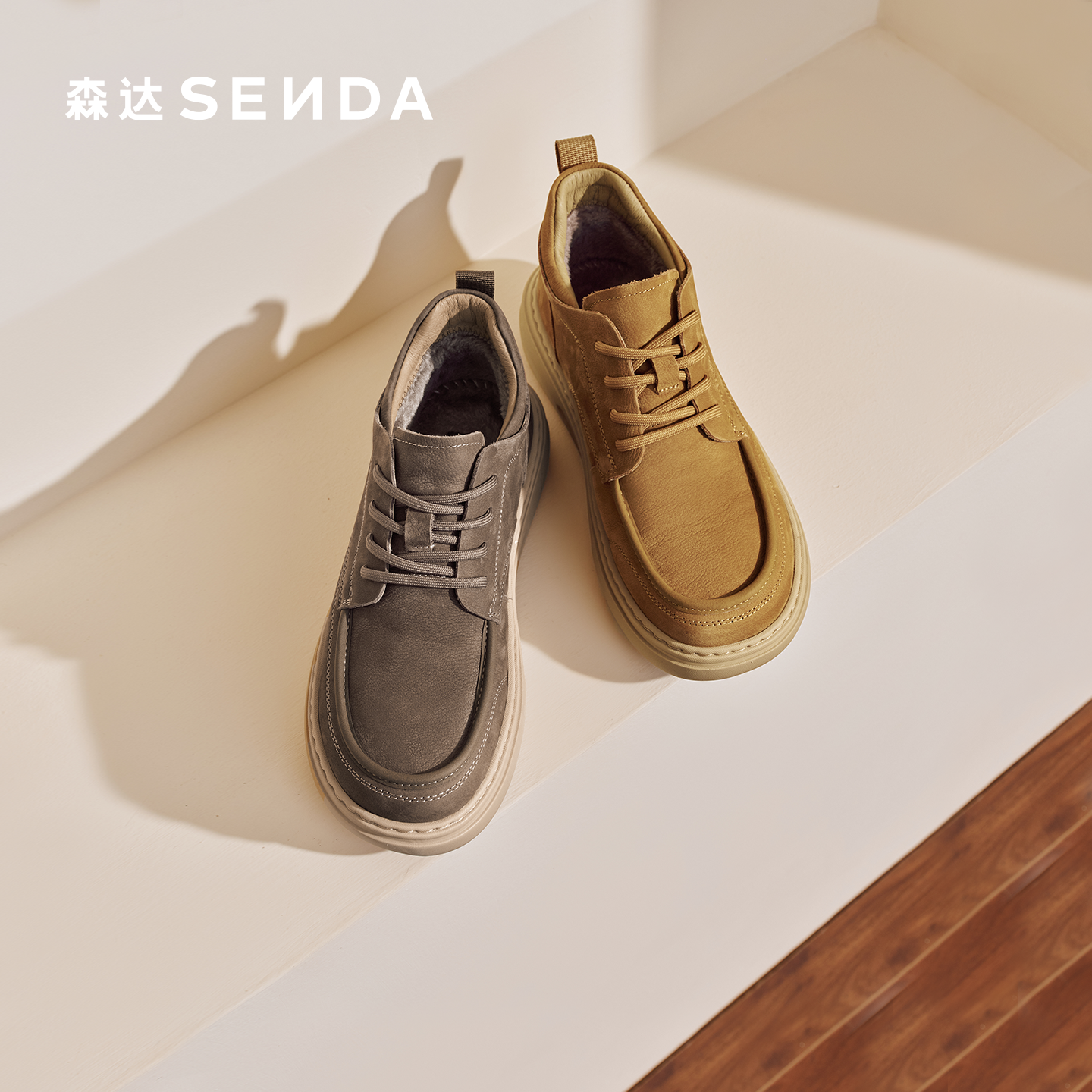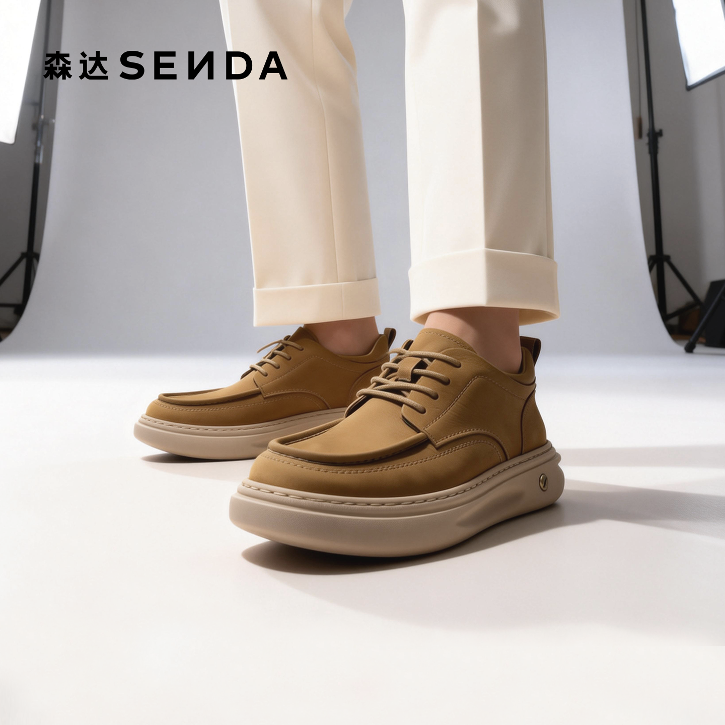 森达冬春新款户外薄款厚底工装鞋