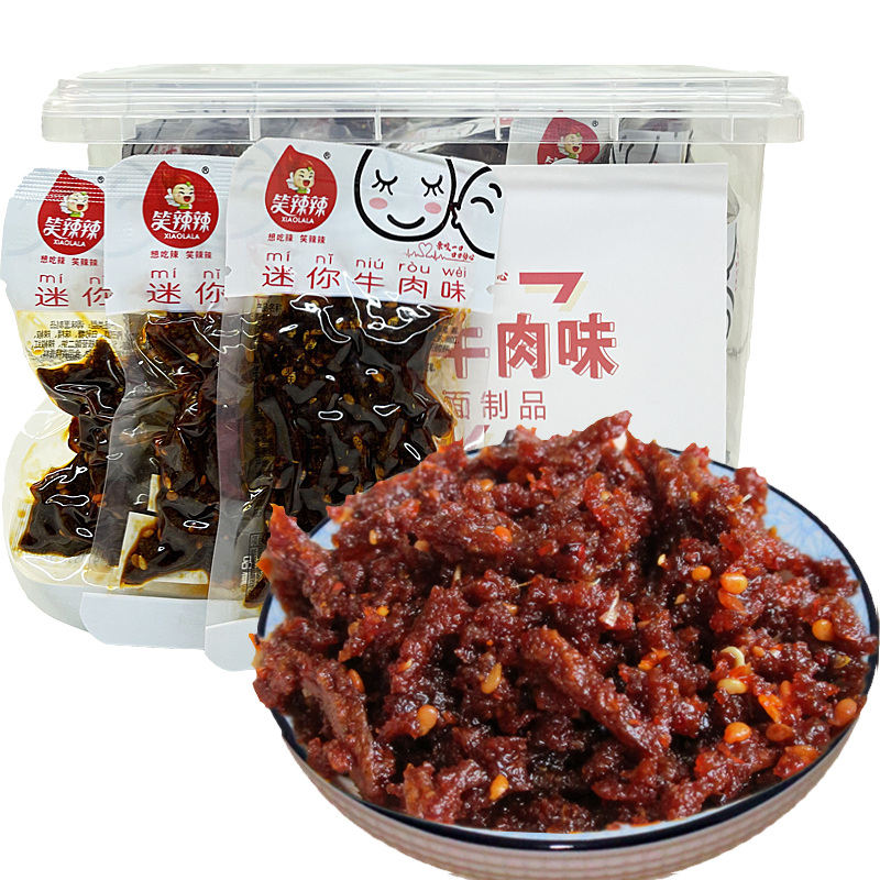 笑辣辣迷你牛肉味辣条麻辣零食素牛筋粒儿时爽辣香辣条休闲小吃