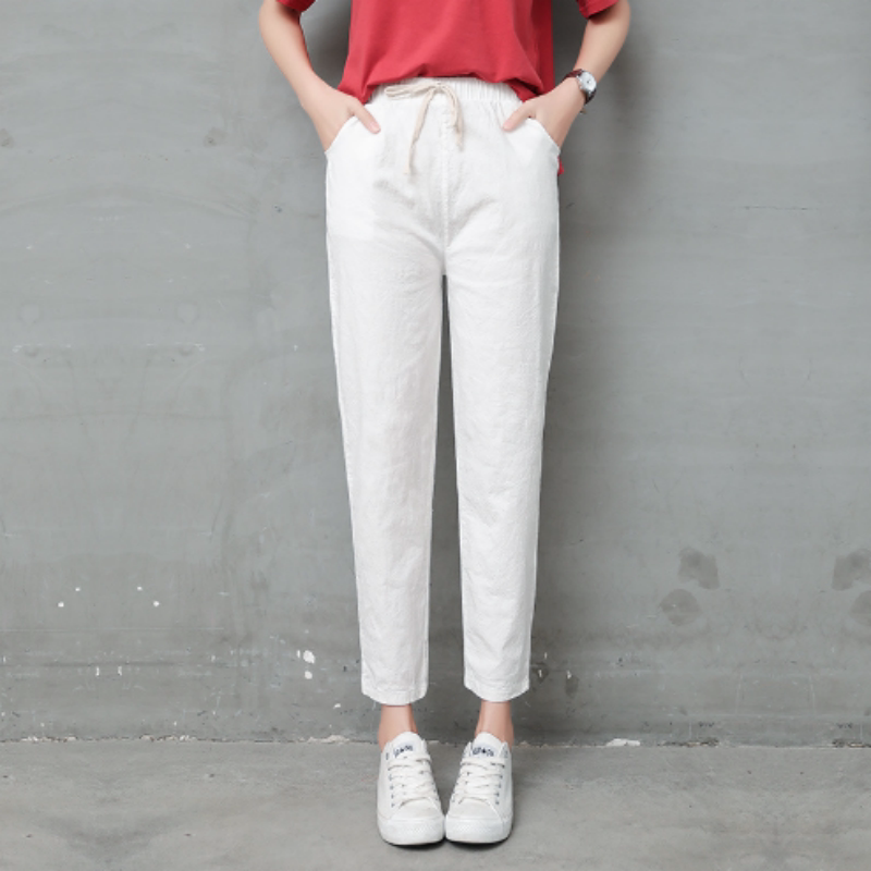 棉麻九分裤女春夏薄款宽松大码哈伦裤秋季显瘦长裤纯棉高腰休闲裤
