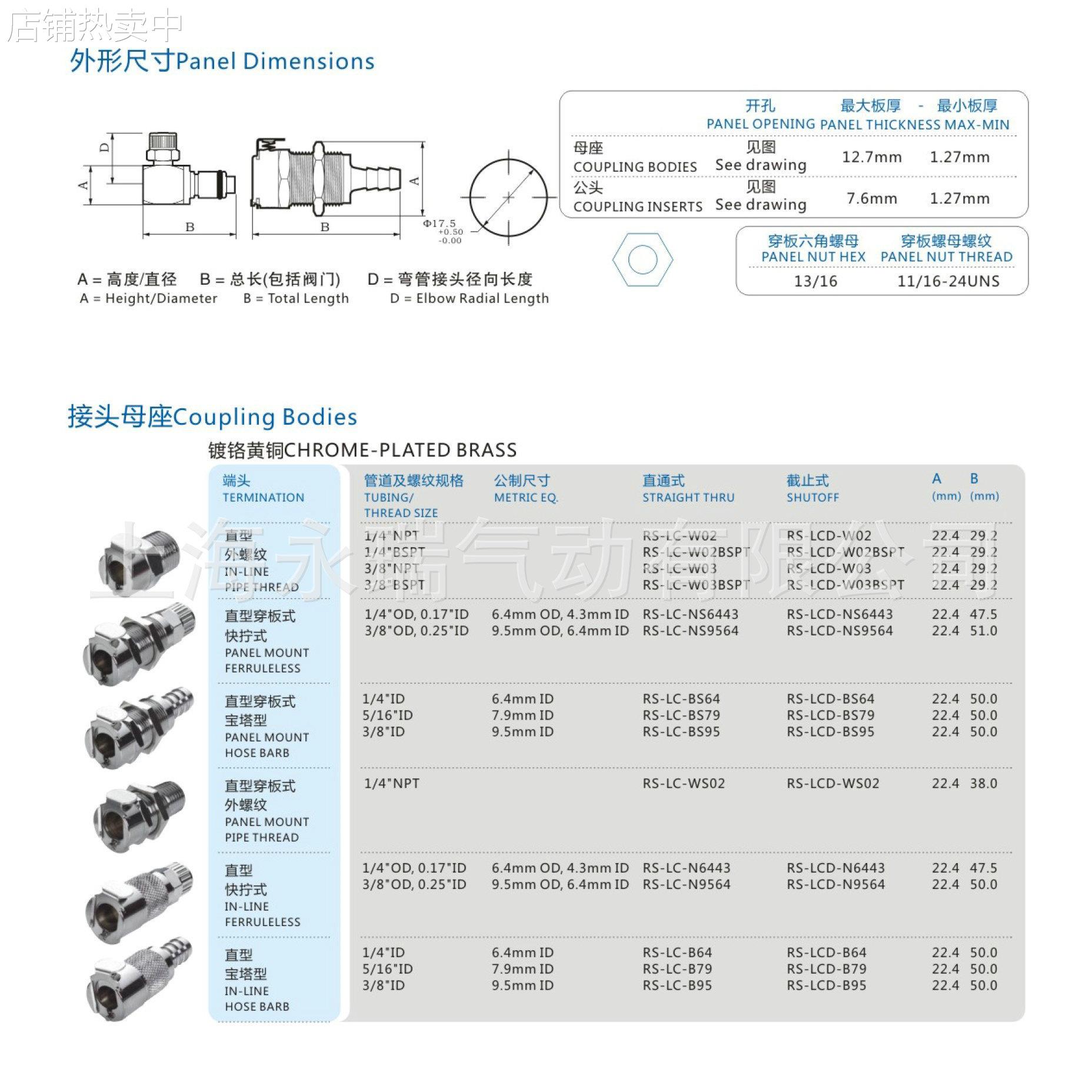 NCZ|RP-LC系列不锈钢快速接头L型宝塔公头23004 23005 23006燃油