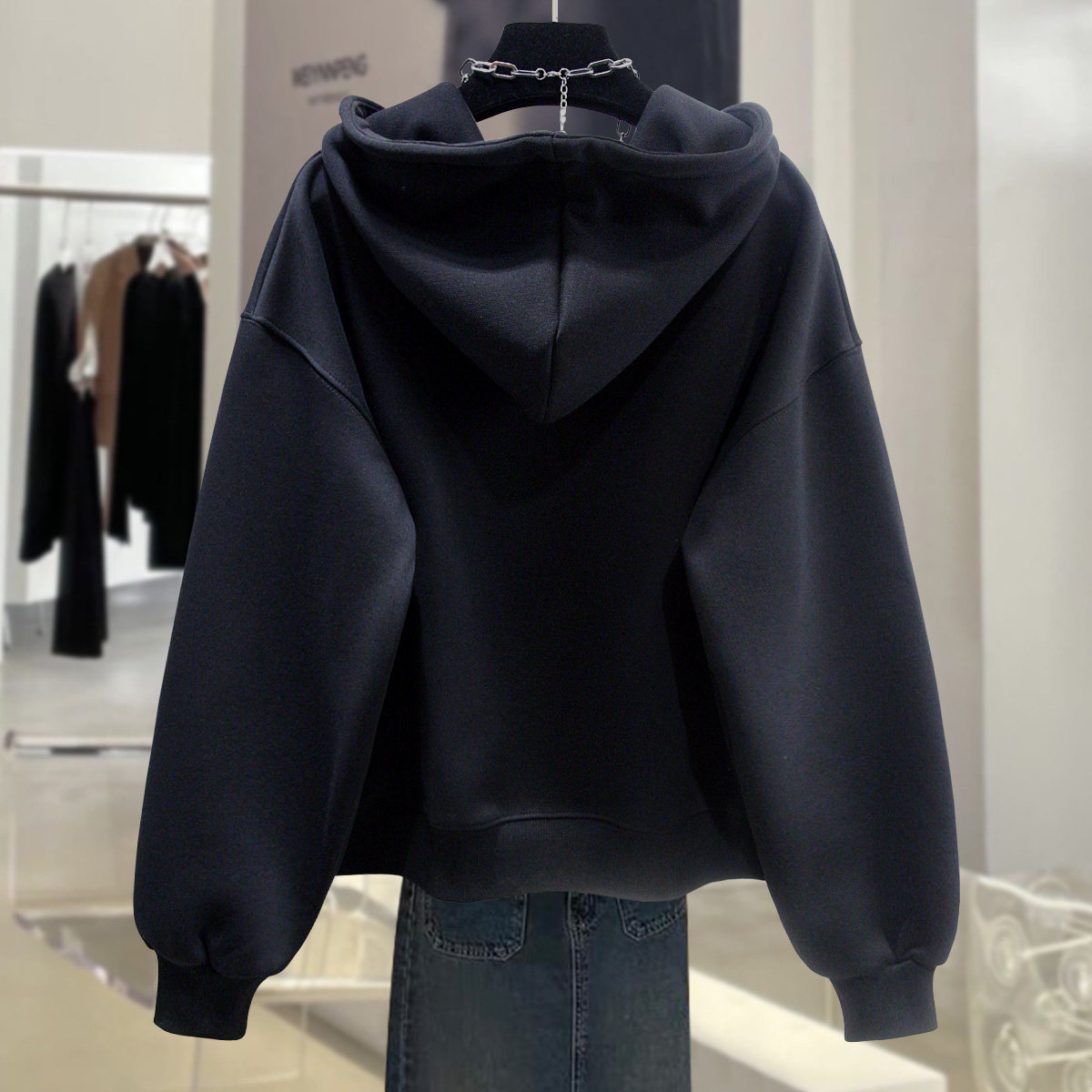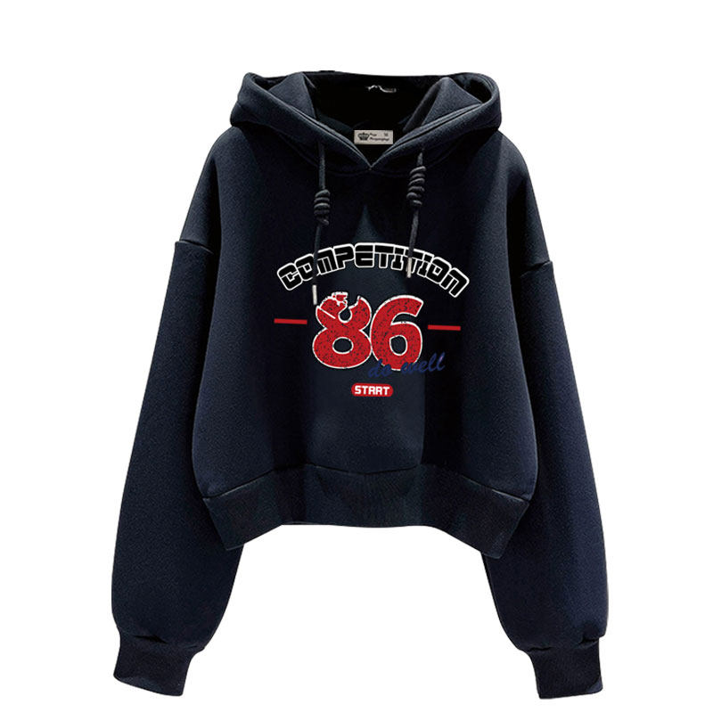 2025春秋冬季新款裂纹数字母加绒加厚宽松套头短款连帽卫衣女潮