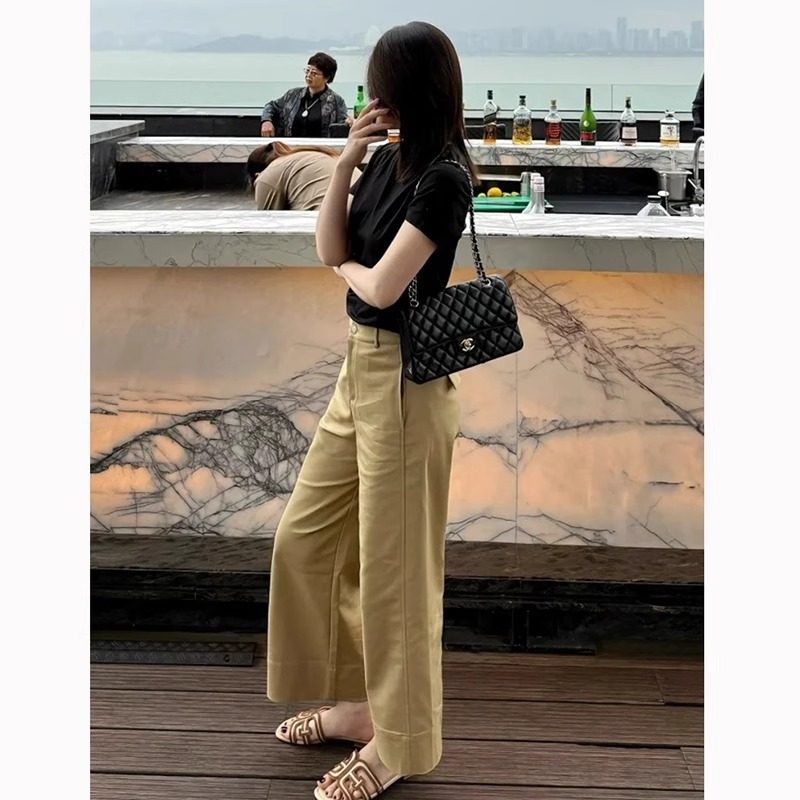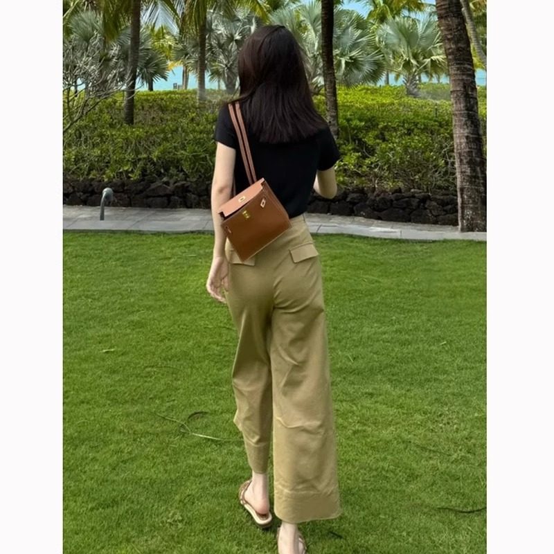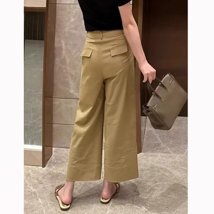 卡其色高腰直筒阔腿九分裤女春夏季2025新款宽松显瘦梨形休闲裤子