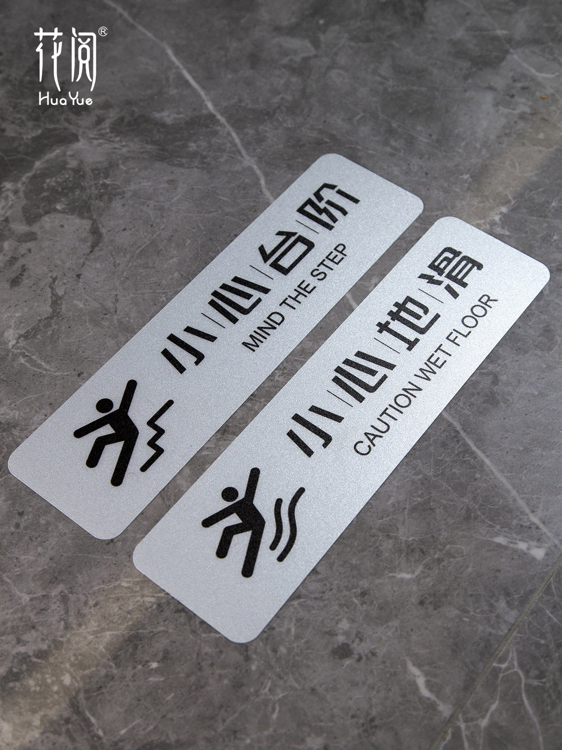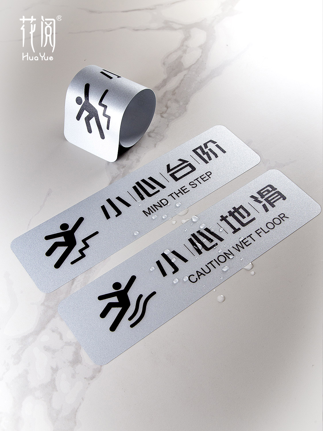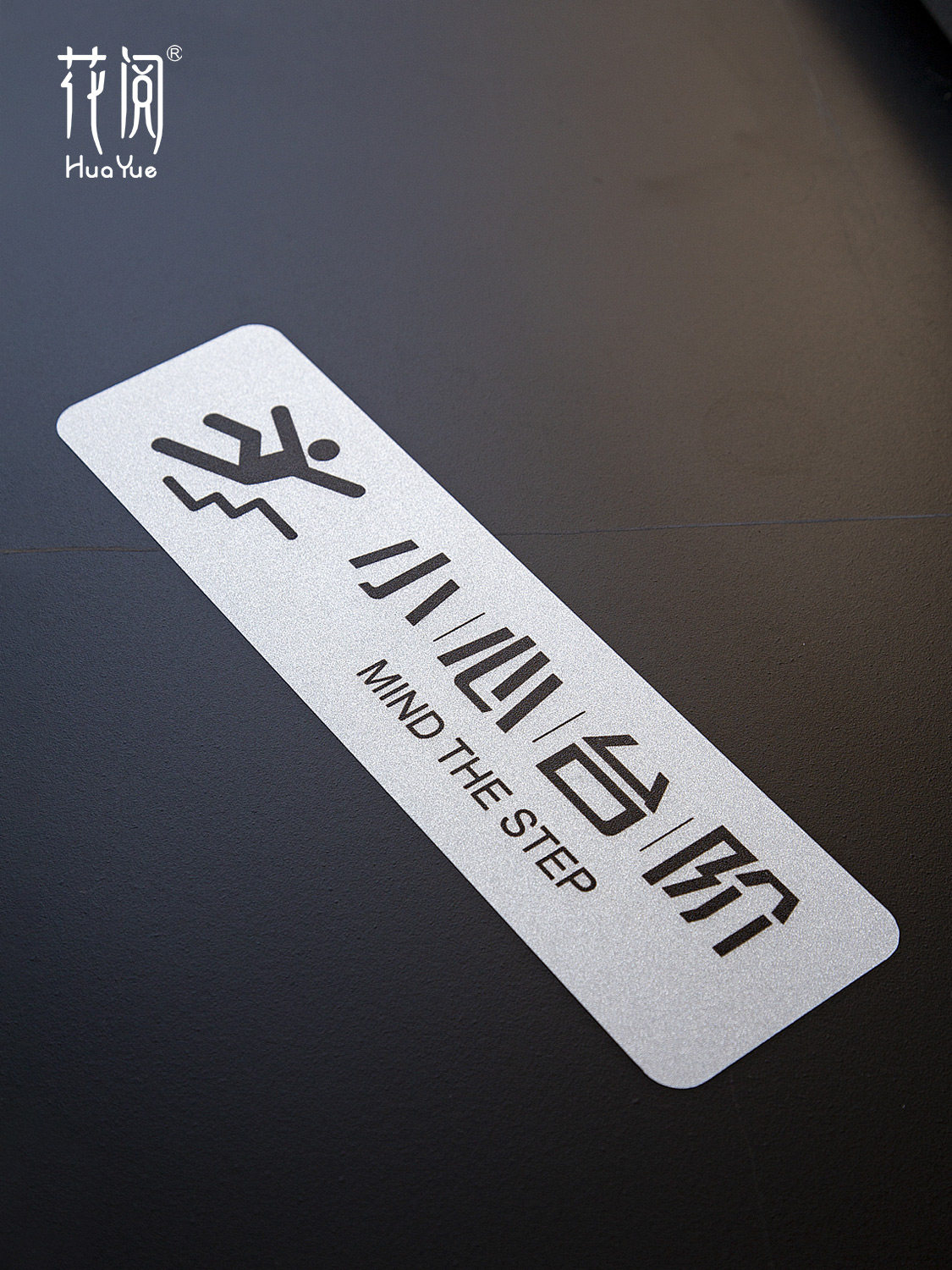 小心台阶地滑地贴温馨提示牌贴纸反光银色墙贴当心脚下卫生间提示标语当心碰头玻璃楼梯标识洗手间指示定制