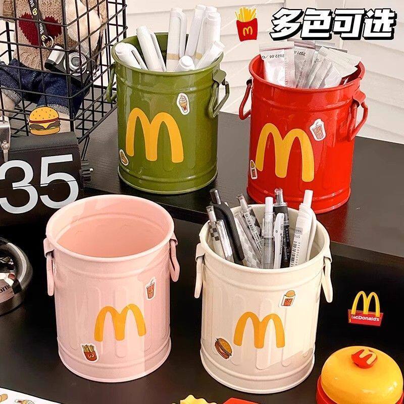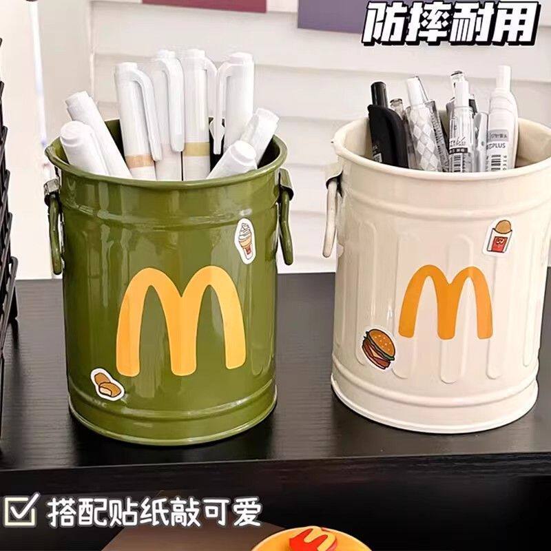 高颜值ins笔筒美式复古小众可爱铁艺小桶桌面办公文具化妆刷收纳