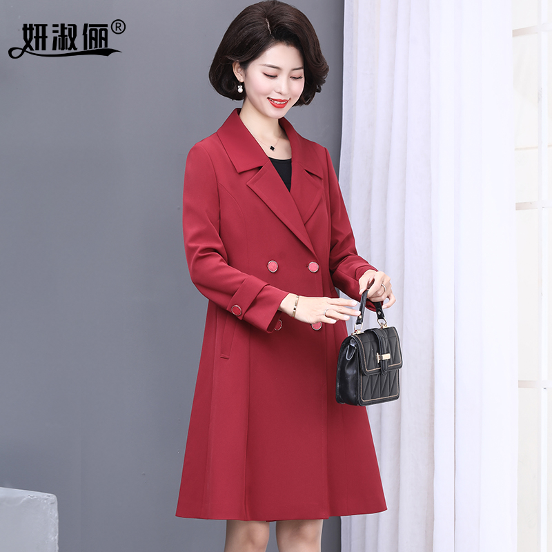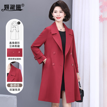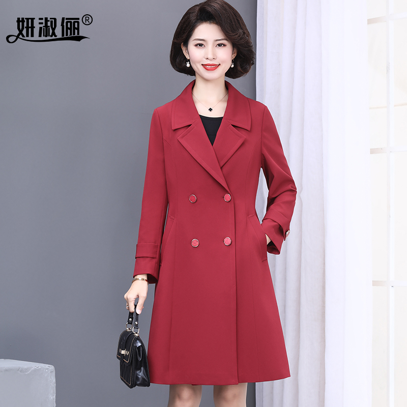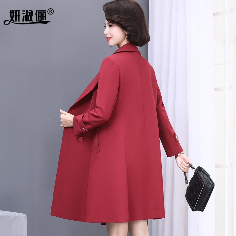 喜妈妈秋装风衣女2025新款时尚高贵洋气质中老年结婚红色大衣外套