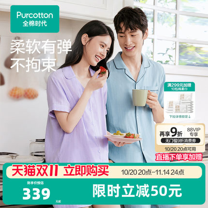 全棉时代男女士双层纱布家居服纯棉情侣短袖睡衣夏五分裤夏装