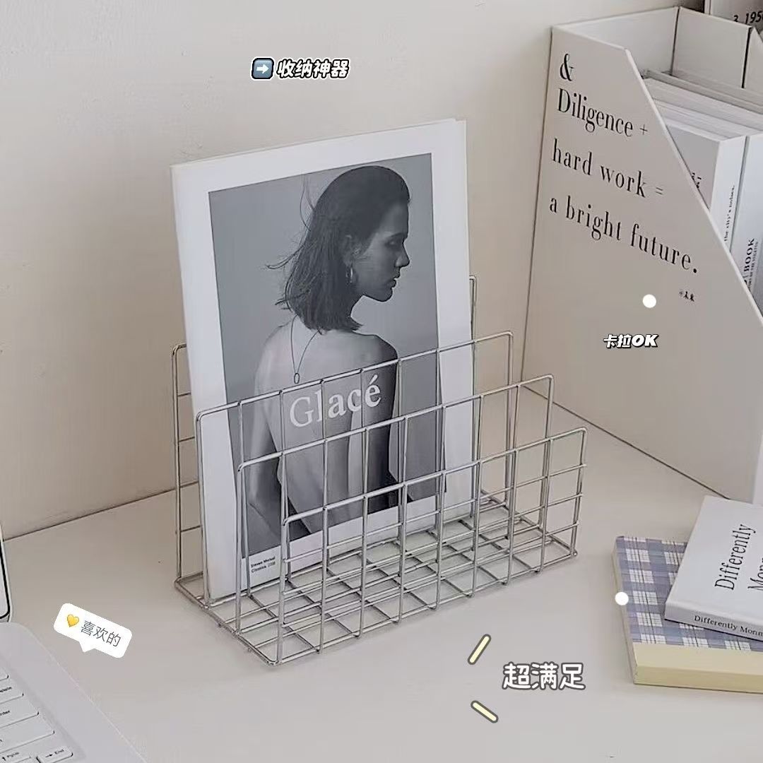 桌面铁艺置物架ins风简约桌上宿舍整理架书立书桌多功能收纳架铁艺三格书架办公室创意文件架收纳装饰置物架