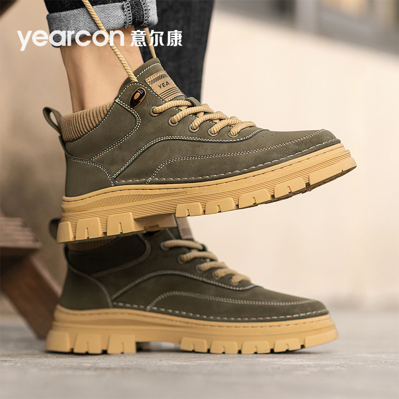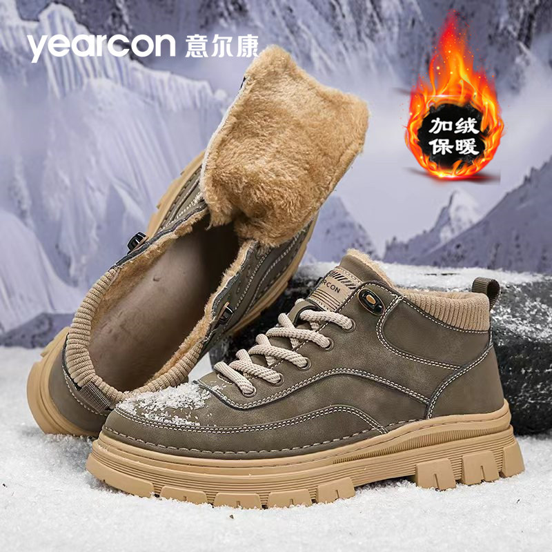意尔康马丁靴男士2025新款超火爆款冬季加绒大棉鞋高帮工装皮短靴