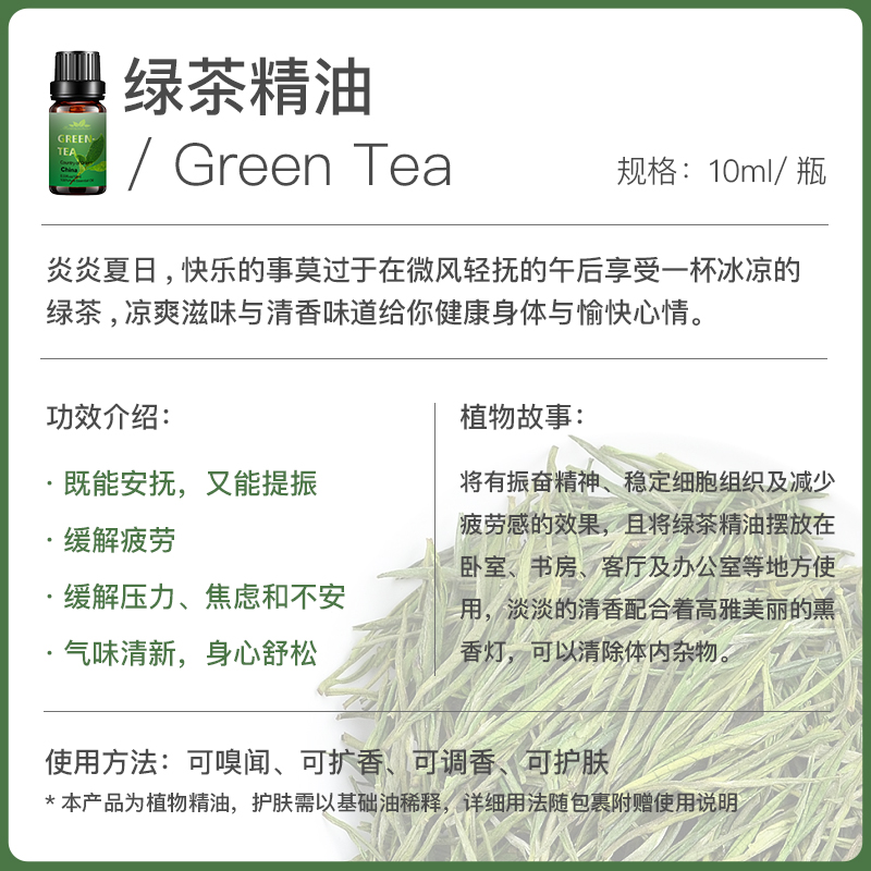 「万物」绿茶芳疗级有机天然植物单方精油面部身体护肤按摩香薰