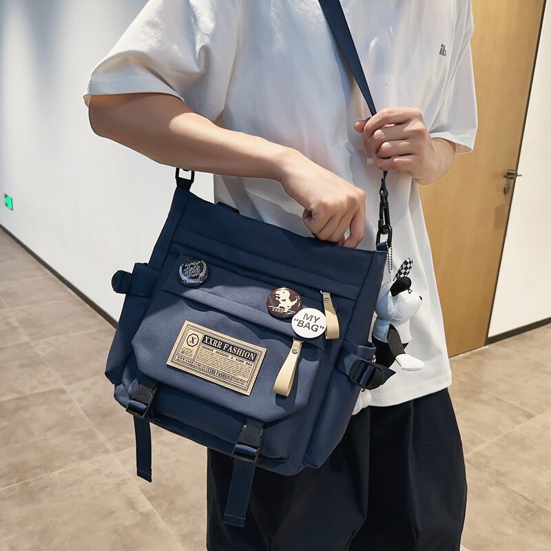 初中学生斜挎包男孩补课手提拎书袋单肩布包高中生书包补习背包