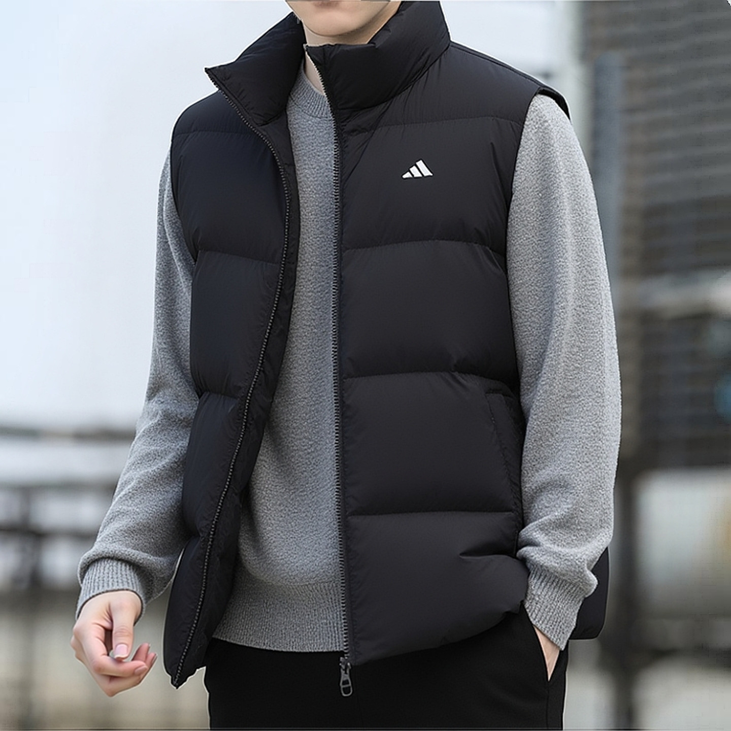阿迪达斯加厚防风男羽绒背心冬季立领宽松运动服休闲羽绒服马甲