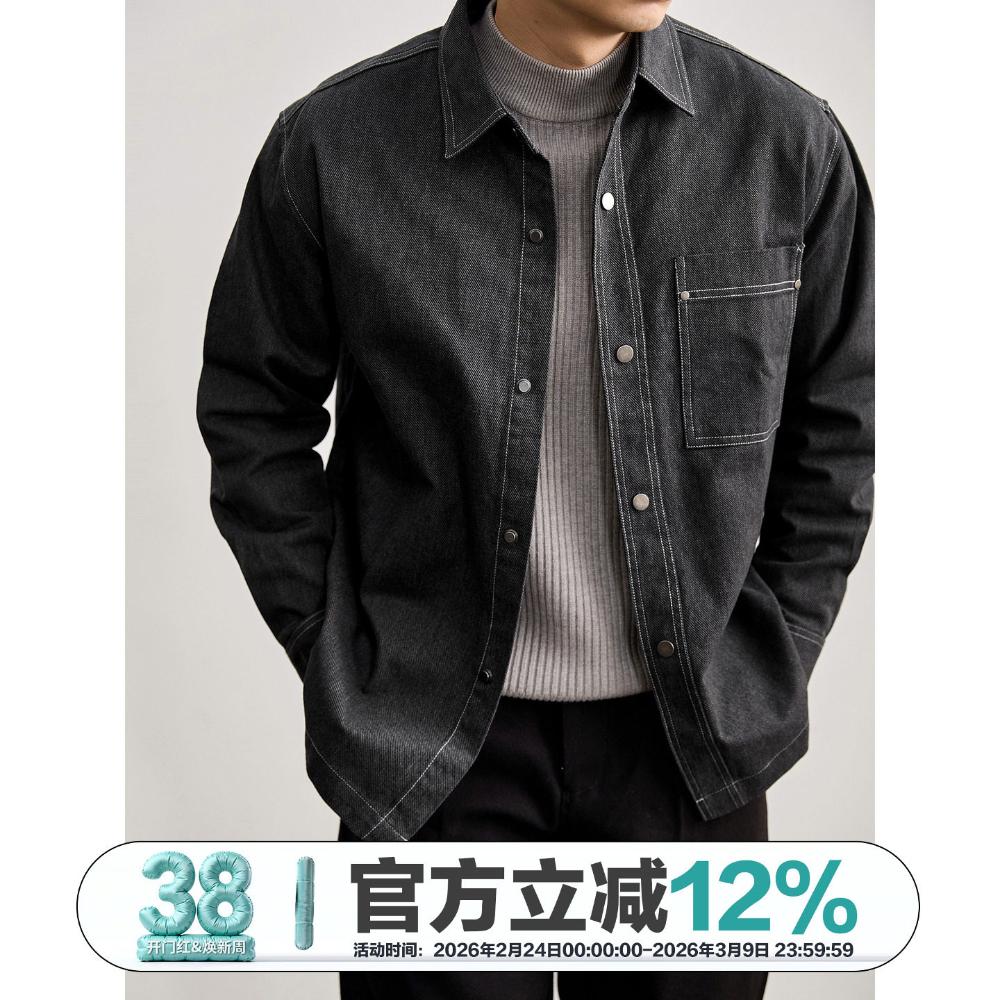 夹克男士牛仔褂外套纯棉工作服工装加厚电焊服翻领单排扣牛仔衣