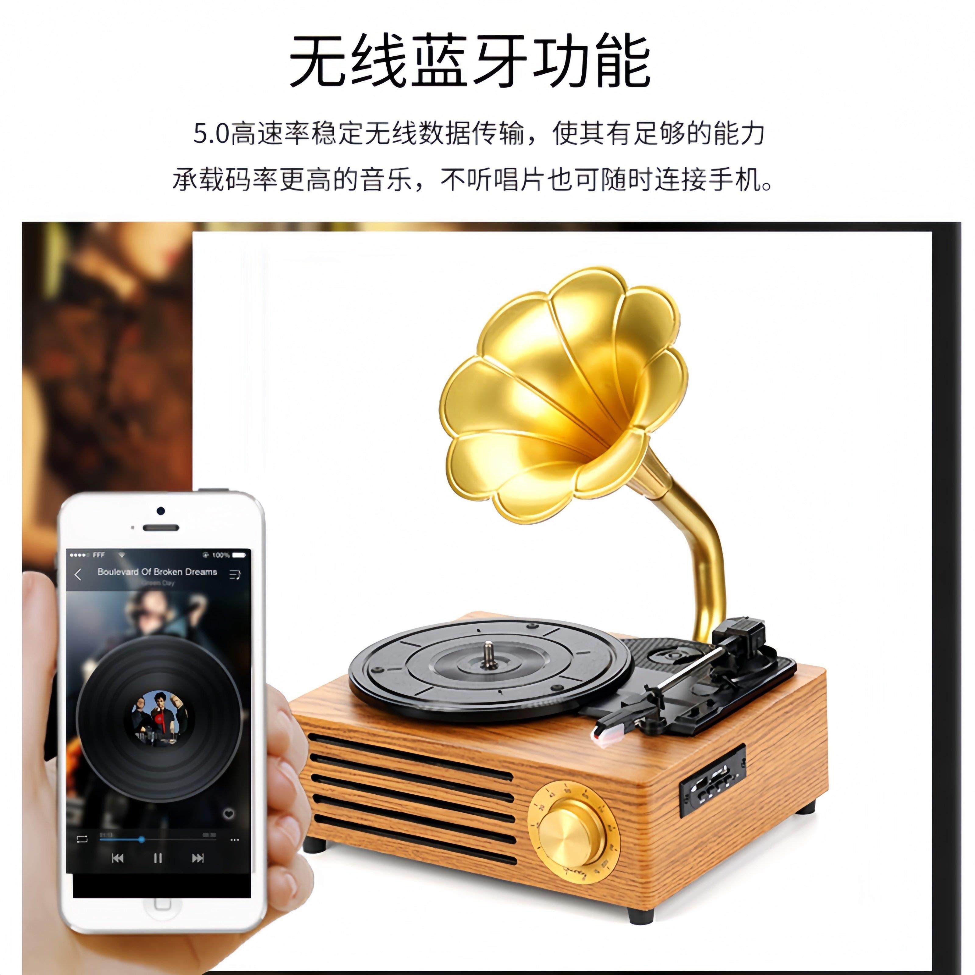 德国柏林之声音效复古台式留声机客厅创意黑胶唱片机仿古大喇叭花