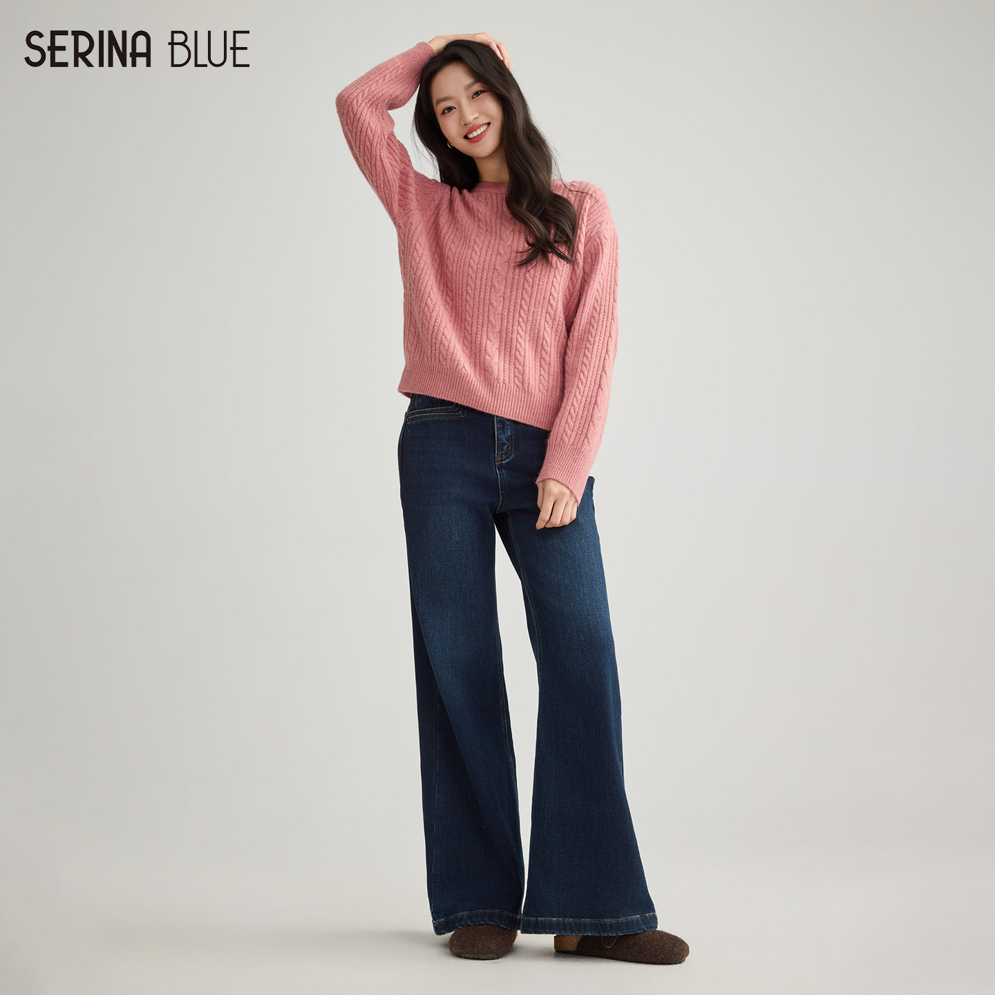 SeRinaBlue微喇高腰阔腿裤女款