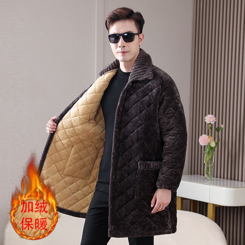 四川省服冬季新款加绒加厚罩衣男外穿中长款翻领棉袄宽松保暖棉衣
