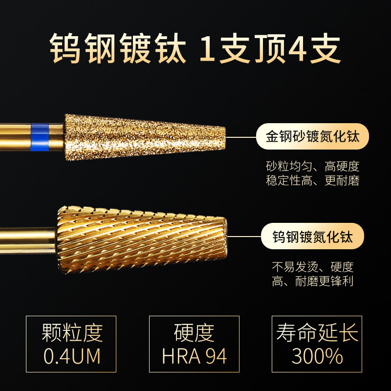 钨钢镀钛美甲专用卸甲前置打磨头