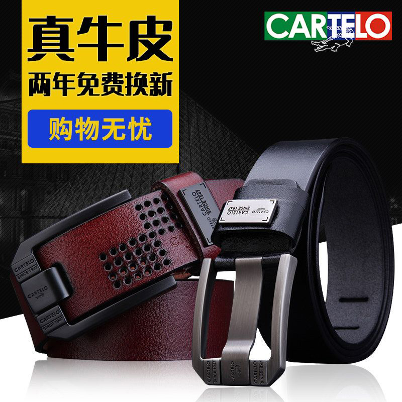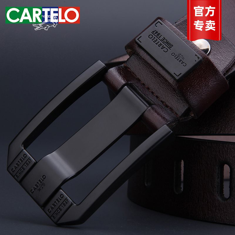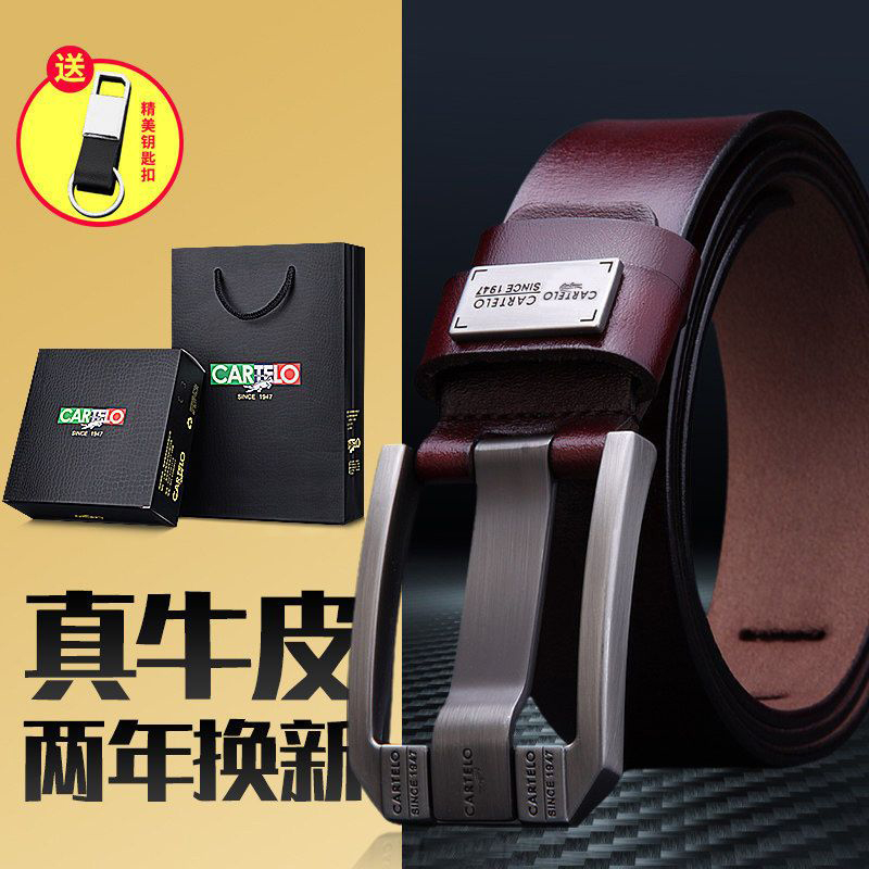 正品卡帝乐鳄鱼皮带男真皮针扣腰带男士牛皮休闲加宽裤带韩版潮