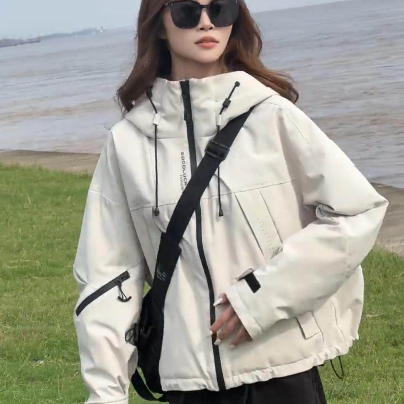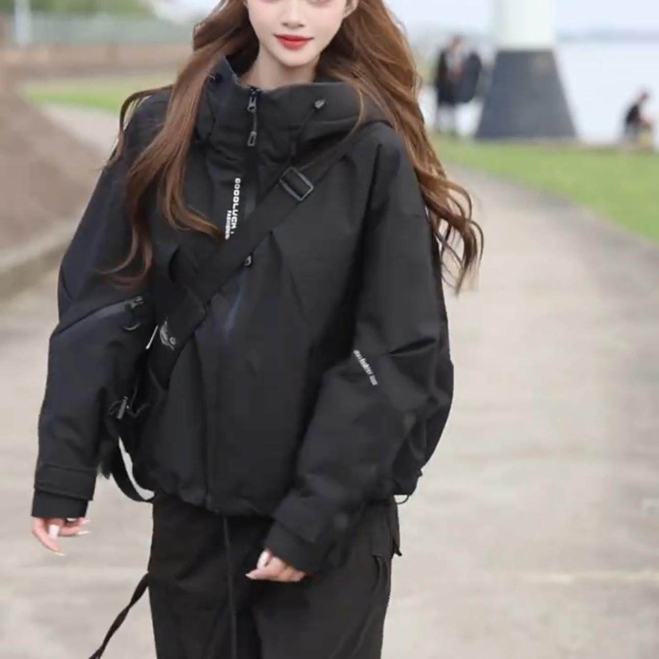 黑色夹棉加厚冲锋衣棉服外套女2025冬款时尚爆款高级休闲短款棉衣