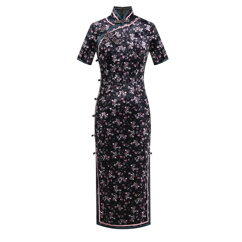 名兰世家新中式旗袍中国风碎花阔太太聚会礼服优雅改良连衣裙原创