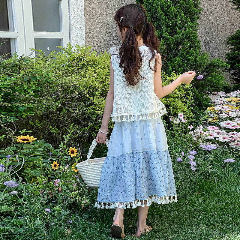 女童夏季连衣裙套装2025新款长裙儿童流苏背心裙子女孩质感半身裙