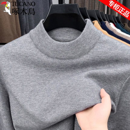 啄木鸟男士纯色毛衣半高领保暖打底针织衫秋冬款加厚保暖休闲上衣