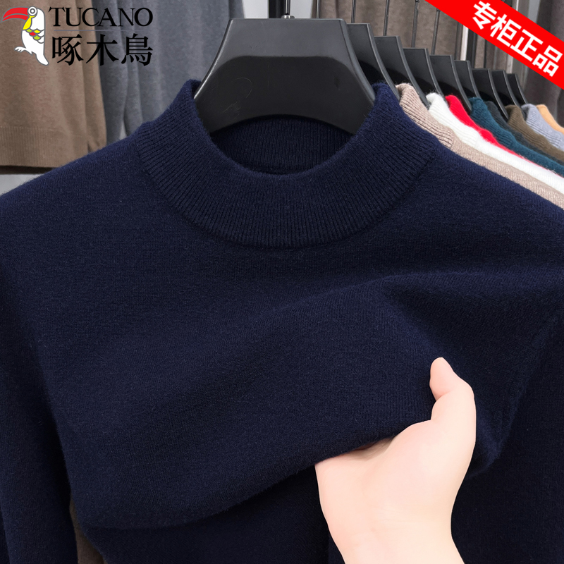 啄木鸟半高领纯色加厚男士针织衫