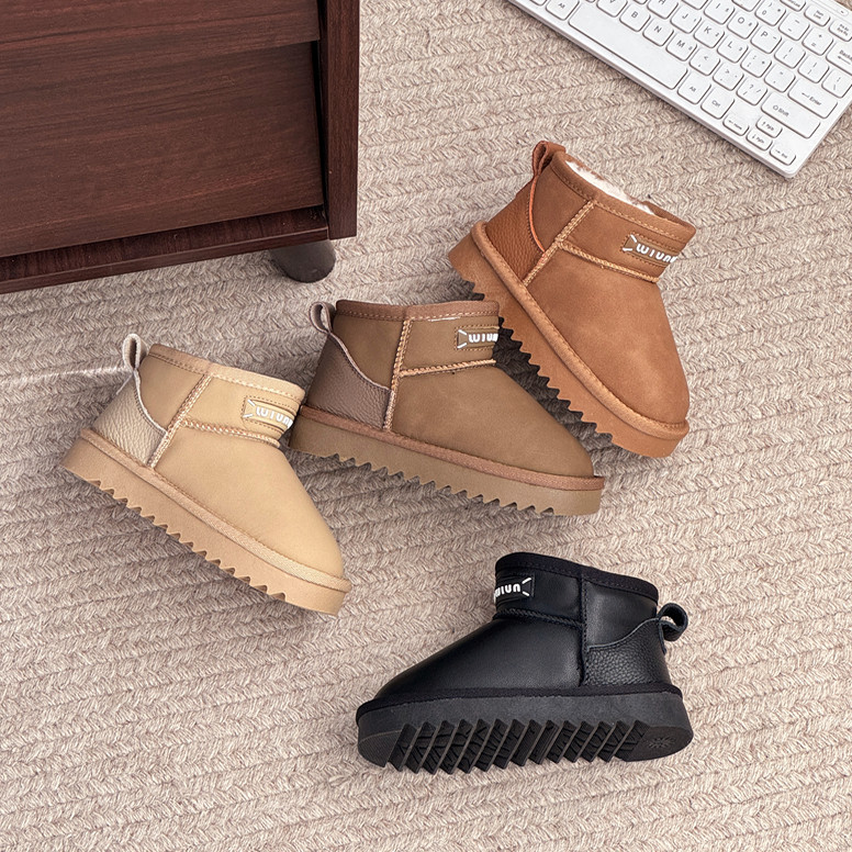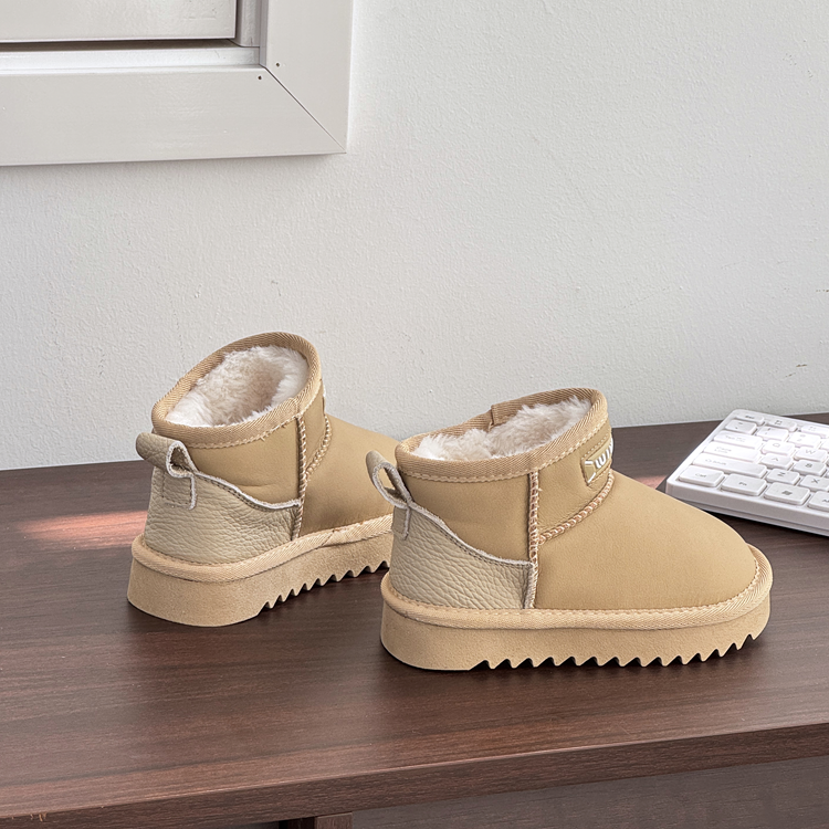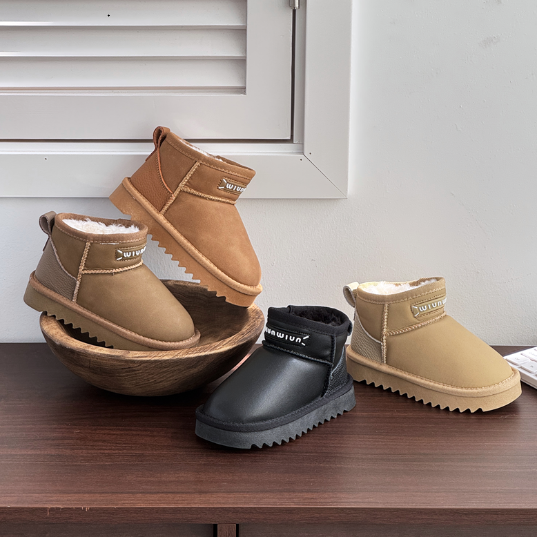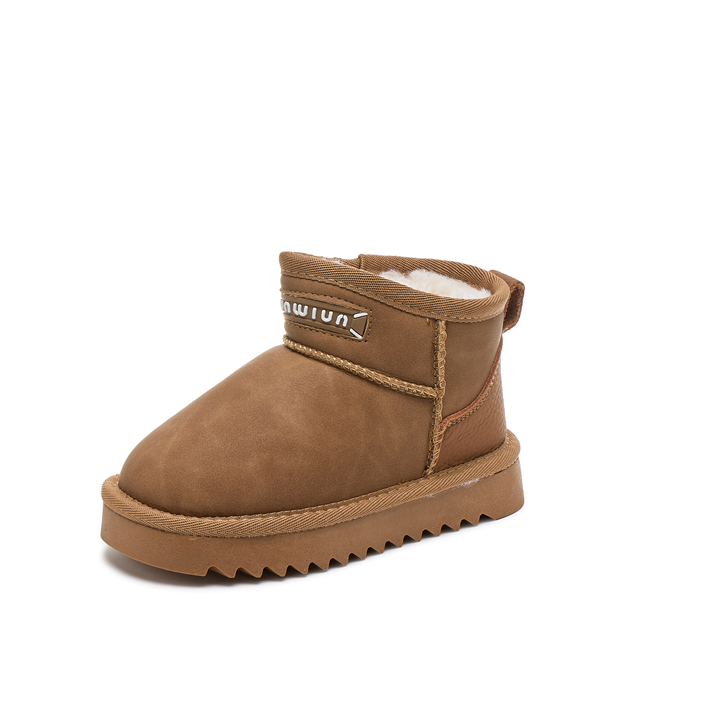 儿童雪地靴皮面2025冬季新款女童大棉鞋加绒加厚男童短靴防水防滑
