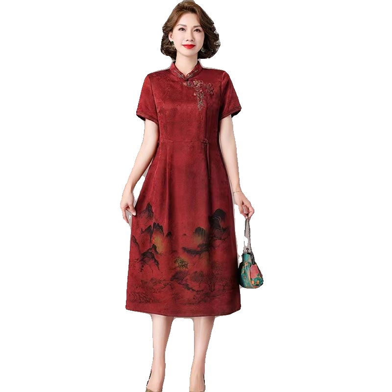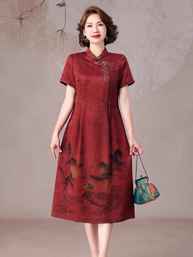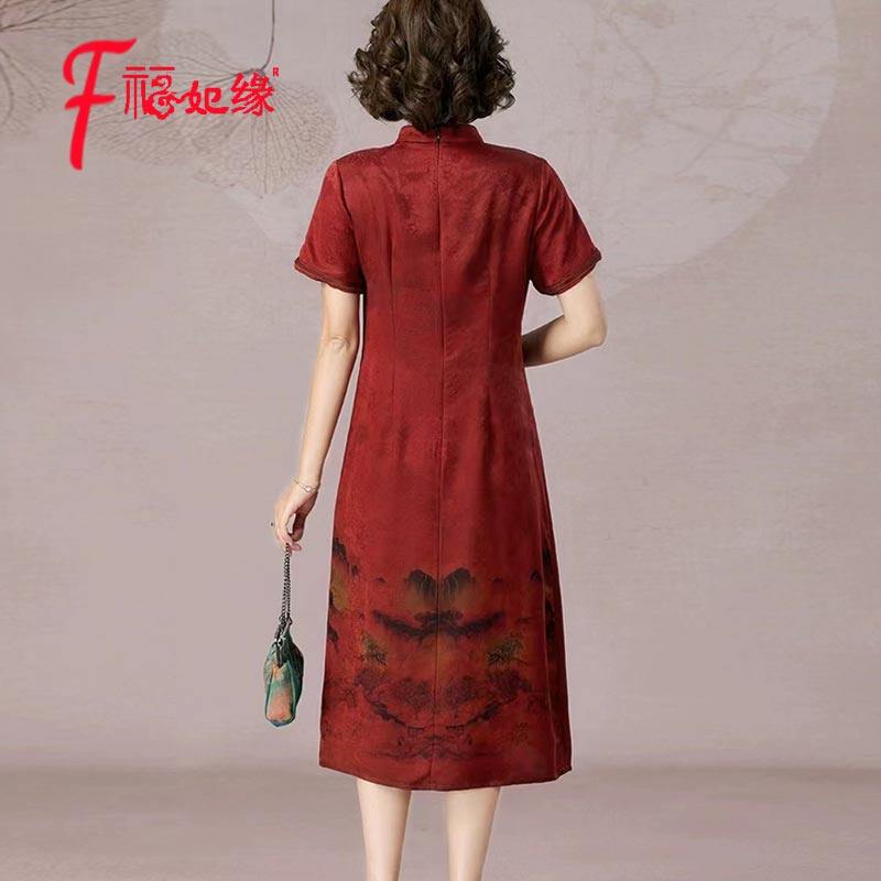 高端品牌花萝香云纱旗袍连衣裙年轻妈妈喜服婚宴礼服桑蚕丝百分百