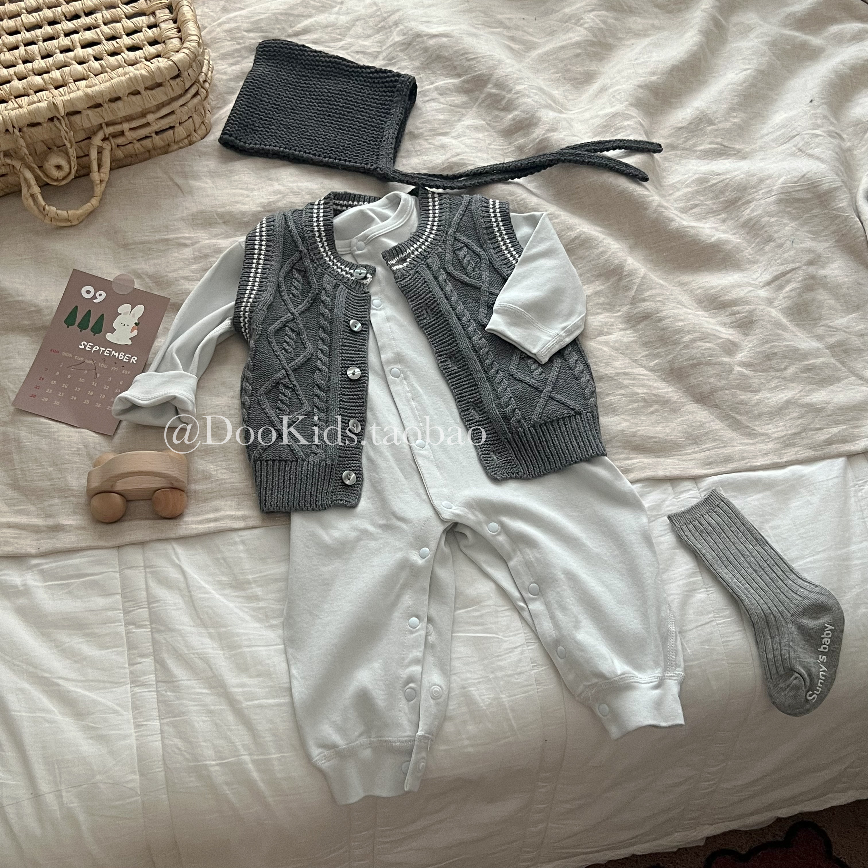 ins韩版婴儿麻花针织马甲纯棉坎肩秋冬百搭男女宝宝春秋外出背心